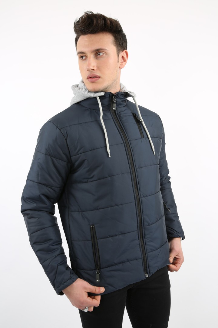 · Kapşonlu yan cepli erkek günlük şişme mont soğuk havalar için idealdir;