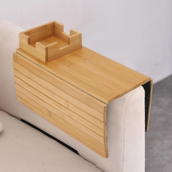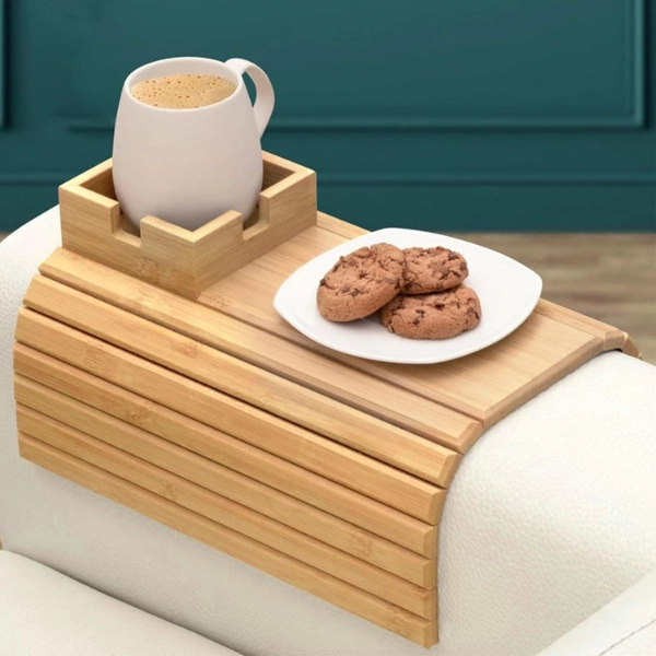 KATLANABİLİR AHŞAP KOLTUK YANI KANEPE TEPSİSİÜrün ÖzellikleriKatlanabilir ahşap koltuk yanı kanepe tepsisi, kol dayama kısmını pratik bir servis alanına dönüştürmek için tasarlanmış kullanışlı bir ev aksesuarıdır. Esnek ve katlanabilir 32x33 cm boyutundaki yapısı sayesinde farklı genişlikteki koltuk ve kanepelere kolayca uyum sağlar. Ahşap yüzeyi içecek, atıştırmalık, kumanda veya telefon gibi eşyaları sabit bir zemin üzerinde kullanmanıza imkân tanır. Üst kısmında yer alan özel bölmeli alan sayesinde kupa veya bardak daha dengeli şekilde konumlandırılabilir. Koltuk yanı tepsi tasarımı ile sehpa ihtiyacını azaltır ve dar alanlarda pratik çözüm sunar. Katlanabilir kanepe tepsisi kullanılmadığında düz şekilde katlanarak kolayca saklanabilir. Doğal ahşap görünümü ile dekorasyona uyum sağlar ve hem oturma odasında hem de çalışma alanlarında işlevsel kullanım sunar. Ahşap koltuk kol dayama tepsisi, evde konforlu ve düzenli bir kullanım deneyimi sağlar.Ürün Teknik Özellikleri Özellik Açıklama Ürün Adı Katlanabilir Ahşap Koltuk Yanı Kanepe Tepsisi Malzeme Ahşap Renk Doğal ahşap Kullanım Alanı Koltuk ve kanepe kol dayama alanı Paket İçeriği1 adet katlanabilir ahşap koltuk yanı kanepe tepsisi