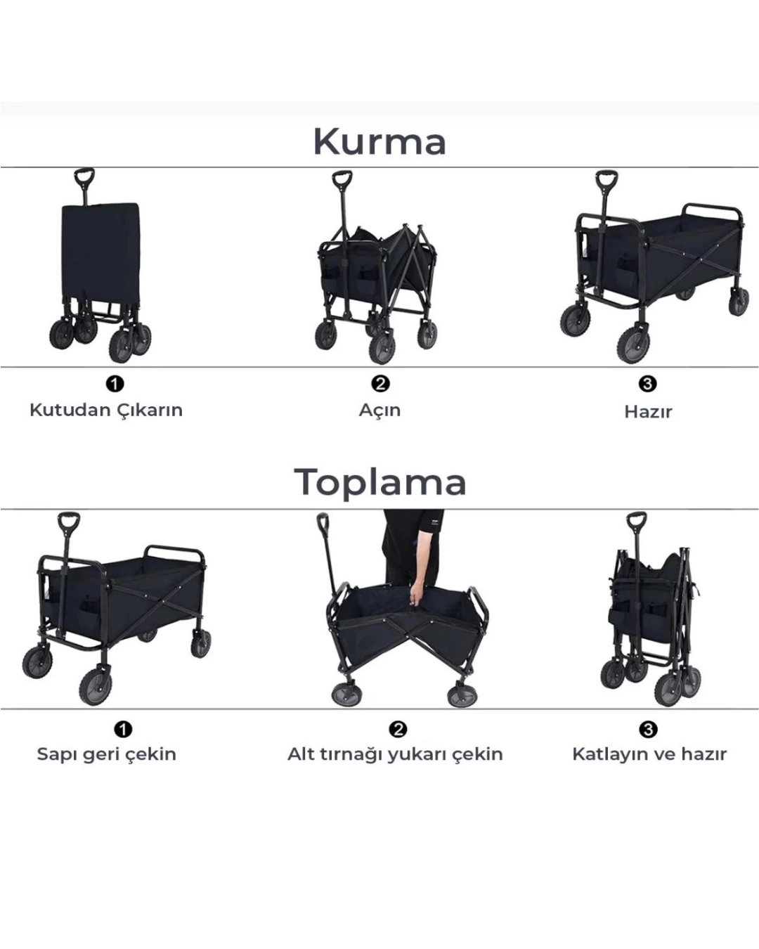 Katlanır Kamp ve Plaj Arabası, hem açık hava aktivitelerinde hem de günlük yaşamda taşıma işlerini kolaylaştırmak için geliştirilmiş fonksiyonel bir vagon modelidir. Kamp alanlarında, plajda, bahçede veya alışveriş sırasında eşyaları tek seferde ve düzenli biçimde taşıma imkânı sunar. Kullanıcıyı yormadan, pratik bir taşıma deneyimi sağlar.Ürünün öne çıkan en önemli özelliği katlanabilir yapısıdır. Kullanım sonrasında saniyeler içinde katlanarak oldukça kompakt bir boyuta gelir. Bu sayede araç bagajında, evde veya depo alanlarında rahatça saklanabilir. Kurulum veya sökme gerektirmeyen tasarımı, zaman kaybını ortadan kaldırır.74,8 kg’a kadar taşıma kapasitesi sayesinde ağır ve hacimli eşyalar için uygundur. Geniş iç alanı, kamp çantaları, soğutucular, bahçe ekipmanları veya market alışverişleri için yeterli alan sunar. Ek olarak bulunan yan cepler, küçük eşyaların düzenli şekilde taşınmasına yardımcı olur.360° dönebilen ön tekerlekler, her yönde kolay hareket imkânı sağlar. Kum, çakıl, çimen ve bozuk zeminlerde dengeli bir sürüş sunar. Bu özellik, özellikle plaj ve kamp alanlarında büyük avantaj sağlar.Ayarlanabilir kulp yapısı, farklı boylardaki kullanıcılar için konforlu bir kullanım sunar. Kilitlenebilir mekanizması sayesinde kontrol kaybı yaşanmaz. Sağlam çelik iskeleti ve dayanıklı kumaşı, uzun süreli kullanımlar için güven verir.Katlanır Kamp ve Plaj Arabası, çok yönlü kullanım imkânı, sağlam yapısı ve pratik tasarımıyla taşıma ihtiyaçlarını zahmetsiz hale getirir.