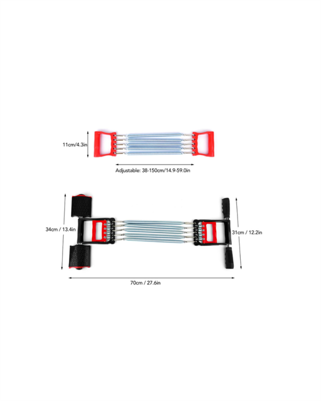 Kol ve göğüs genişletici, mekik çubukları ve el tutucularını bir araya getiren 3’ü 1 arada bu spor aleti, vücudunuzun birçok kas grubunu hedef alarak etkili bir egzersiz deneyimi sunar. 5 elastik paslanmaz çelik yayı sayesinde direnç seviyesi ihtiyacınıza göre kolayca ayarlanabilir. Yaylar minimum üç olmak üzere eklenebilir veya çıkarılabilir, her biri 15 kilogram yük taşıyabilir.Ergonomik olarak tasarlanmış tutma yerleri, egzersiz sırasında elinizin konforlu ve güvenli bir şekilde kavramasını sağlar. Pedallar ise mekik hareketlerinizi destekleyerek stabil bir antrenman yapmanıza olanak verir. Bu çok fonksiyonlu alet, üst vücut, karın, sırt ve bacak kaslarını kapsamlı bir şekilde çalıştırır.Dayanıklı malzemelerle üretilmiş olan ürün, uzun ömürlü kullanım için idealdir. Taşınabilir yapısı sayesinde evde veya dış mekanda kolayca taşıyıp kullanabilirsiniz. Her seviyeden kullanıcı için uygun direnç seçenekleri sunar.