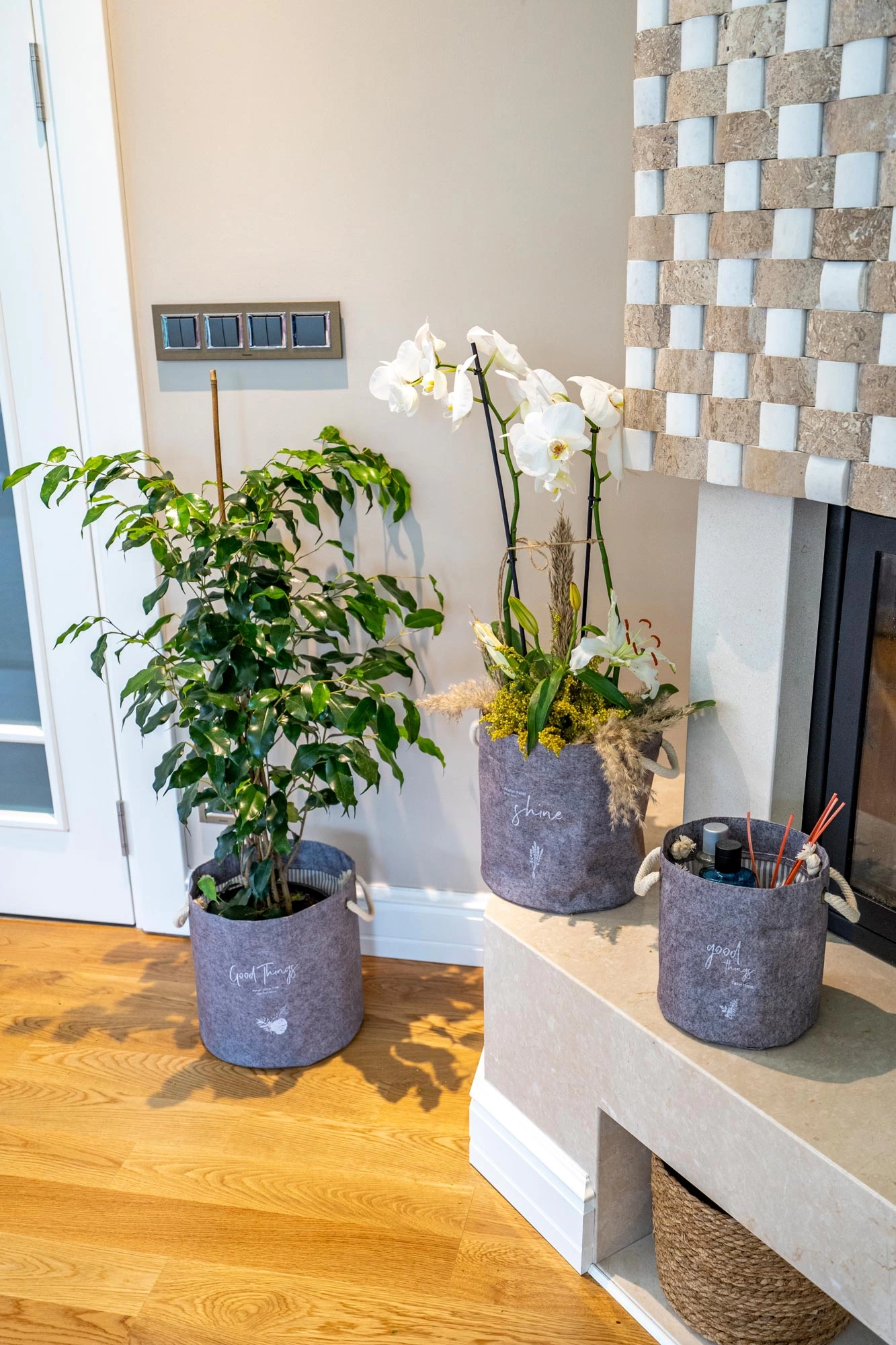 KESGİN MARKET® Kulplu Yuvarlak Düzenleyici Çok Amaçlı Kolay Taşınabilen Organizer Keçe Sepet (3'lü Set)
