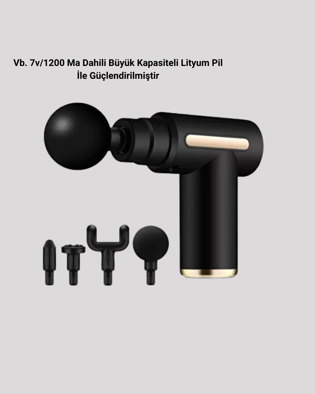 Bu profesyonel derin doku masaj tabancası, kaslarda biriken gerginliği anında gevşetmek ve vücudu rahatlatmak için geliştirilmiş modern bir masaj teknolojisine sahiptir. Cihaz, 6 farklı hız kademesiyle tüm vücut bölgelerine uygun titreşim seviyeleri sunar.Masaj sırasında uygulanan baskıya göre güç artıran akıllı sistem, kas derinliklerine inen güçlü darbeler üretir. Sporcularda sık görülen kas sertliği, laktik asit birikimi ve hareket kısıtlılığı gibi durumlarda hızlı rahatlama sağlar.4 adet masaj başlığı özel olarak şekillendirilmiştir:• Yuvarlak başlık: Tüm kas grupları için• U başlık: Boyun ve omurga bölgesi için• Düz başlık: Derin kas terapisi için• Noktasal başlık: Eklem ve tetik noktaları içinFırçasız motor teknolojisi sessiz çalışmayı sağlarken, titreşim verimliliğini artırır. Motor, uzun kullanım ömrüne sahip olup hızlı titreşimleri kararlı şekilde iletir.1200 mAh yüksek kapasiteli batarya, düzenli masaj seansları için yeterli enerji sağlar. Akıllı güvenlik devreleri cihaza tam koruma sunar.Bu masaj tabancası, kas ağrılarını azaltmak, kas performansını artırmak, spor sonrası toparlanmayı hızlandırmak ve günlük stres kaynaklı gerginlikleri gidermek için mükemmel bir çözümdür. Her yaştan kullanıcıya uygundur ve evde profesyonel masaj etkisi yaratır.