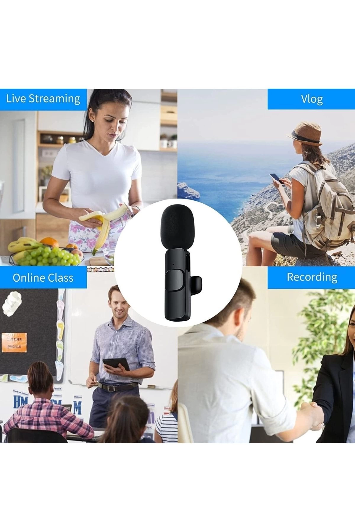 Youtube, Facebook Live, TikTok içerik üreticileri, vloggerlar, bloggerlar, podcast yayıncıları ve röportaj yapanlar için özel olarak tasarlanan bu kablosuz yaka mikrofonu, iPhone telefonlar için ideal bir kayıt deneyimi sunar.