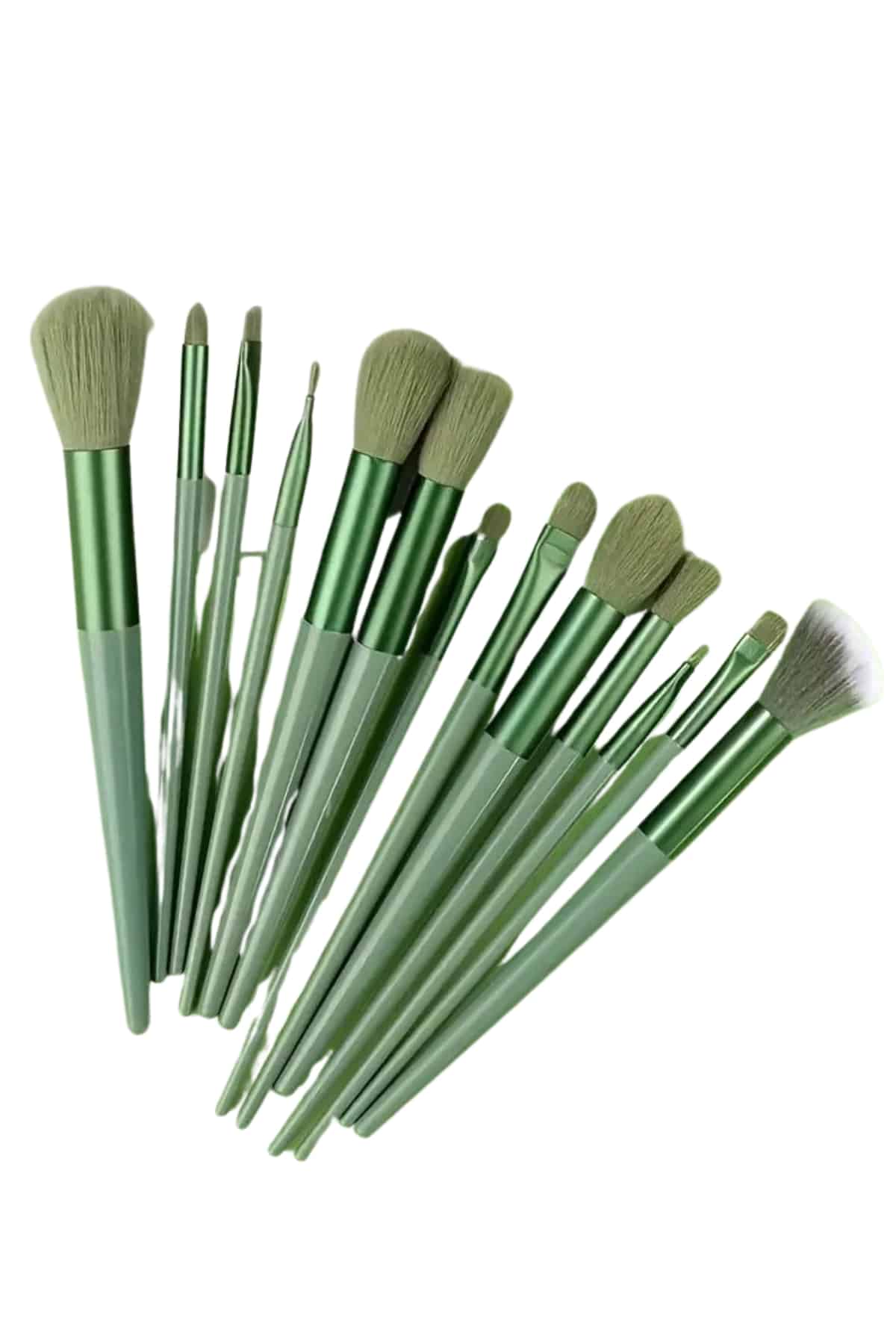 KESGİN MARKET ® Makyaj Fırça Seti Yeşil 13 Parça Fondöten Fırçası Allık Fırçası Far Fırçası