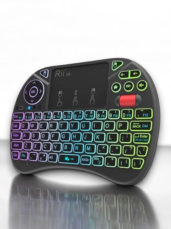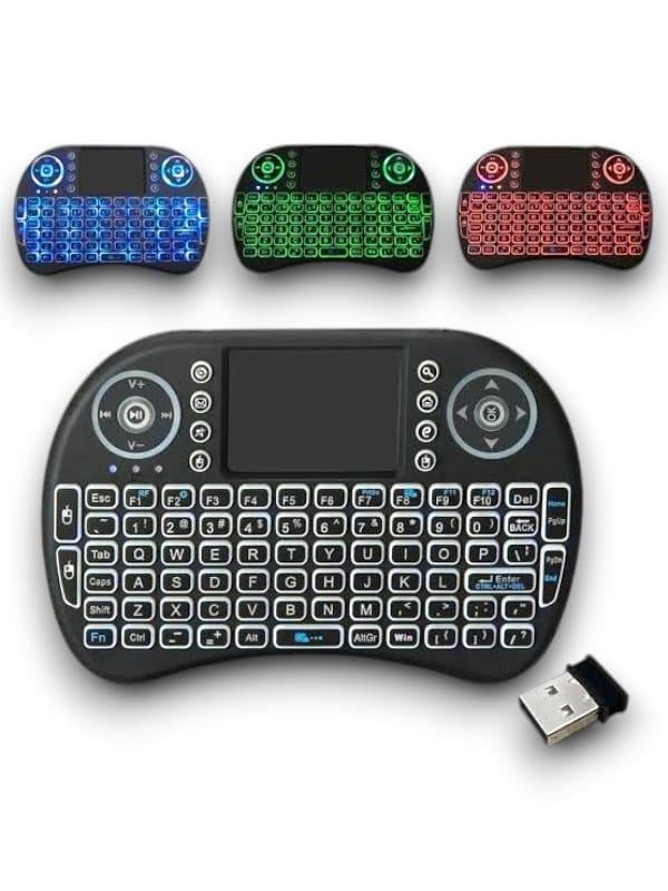KESGİN MARKET® Mini Klavye Işıklı Kablosuz Mini Klavye SmartTV Televizyon PS3 Dokunmatik Mouse Mini Kablosuz Dokunmatik Klavye Mouse 3 Renk olarak klavye ışıklıdır. Işığını açmak için FN + F2 tuşuna basarak renkler arasında geçiş yapabilirsiniz. Bilgisayarınıza, akıllı telefonunuza, tabletinize, televizyonunuza bağlanır. Ufacık boyutu ile yanınızda her yere taşıyabilirsiniz. Kullanımı kolaydır, kaliteli plastikten üretilmiştir. Sadece siyah mevcuttur. 2.4 GHz kablosuz bağlantı ile 10 metreye kadar kullanılabilir. Ürün Pillidir Dahili bataryası içinde mevcuttur. Windows, Android, Mac, Linux destekler PS3, XBOX360 destekler Özellikleri Voltaj: 3.3 V Çalışma akımı: 50mA Frekans: 2.4 GHz Kullanım mesafesi: 10 metreye kadar Ağırlık: 92gr (pilsiz) Boyutları: 14.7x9.8x2cm Kutu İçeriği 1 adet mini klavye 1 adet kullanım klavuzu 1 adet USB verici (klavyenin pil girişinin içindedir.)Kutu İçeriği 1 adet mini klavye 1 adet kullanım klavuzu 1 adet USB verici (klavyenin pil girişinin içindedir.)