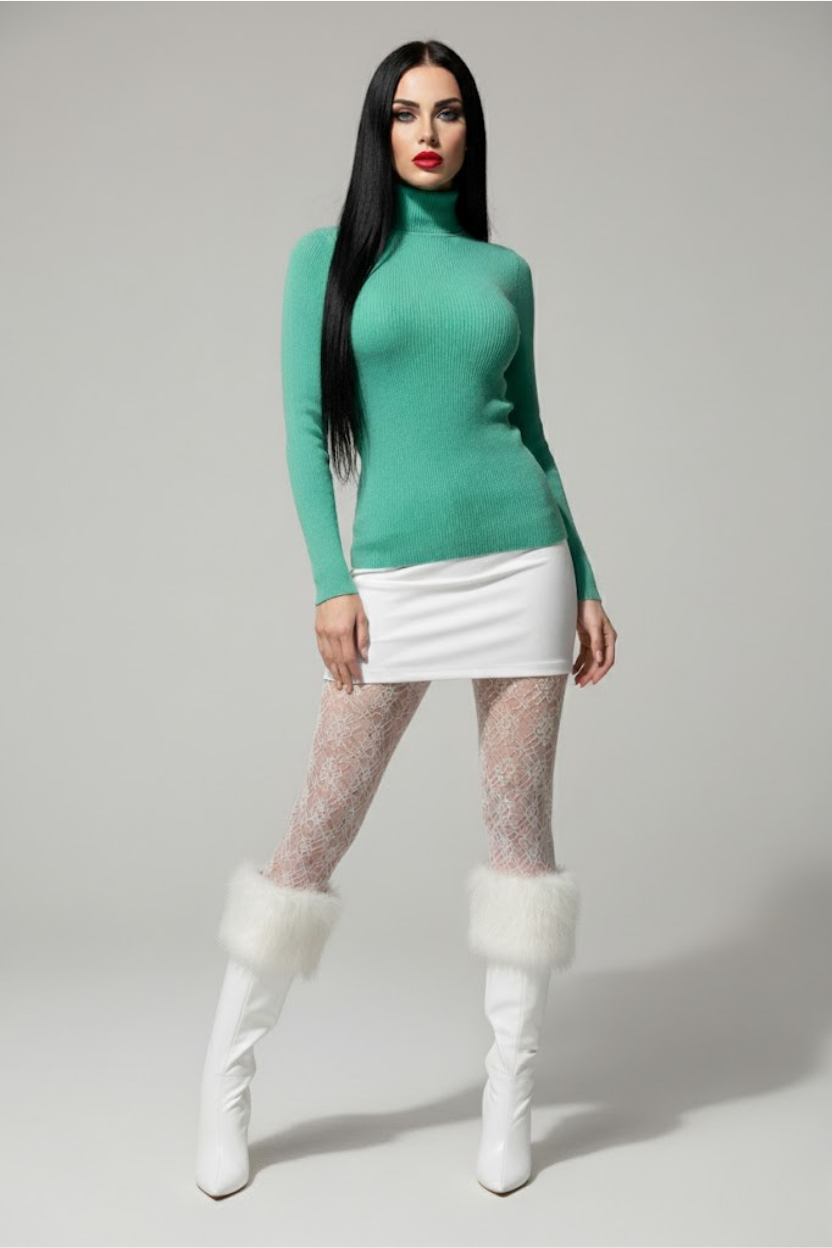 Şıklığı ve rahatlığı bir arada sunan Mint Yeşili Fitilli Balıkçı Yaka Kadın Triko Kazak, gardırobunuzun favorisi olmaya aday. Vücuda oturan kesimi ve esnek fitilli kumaşıyla hareket özgürlüğü sağlarken, balıkçı yaka detayı ile boyun bölgesine zarif bir dokunuş katar.