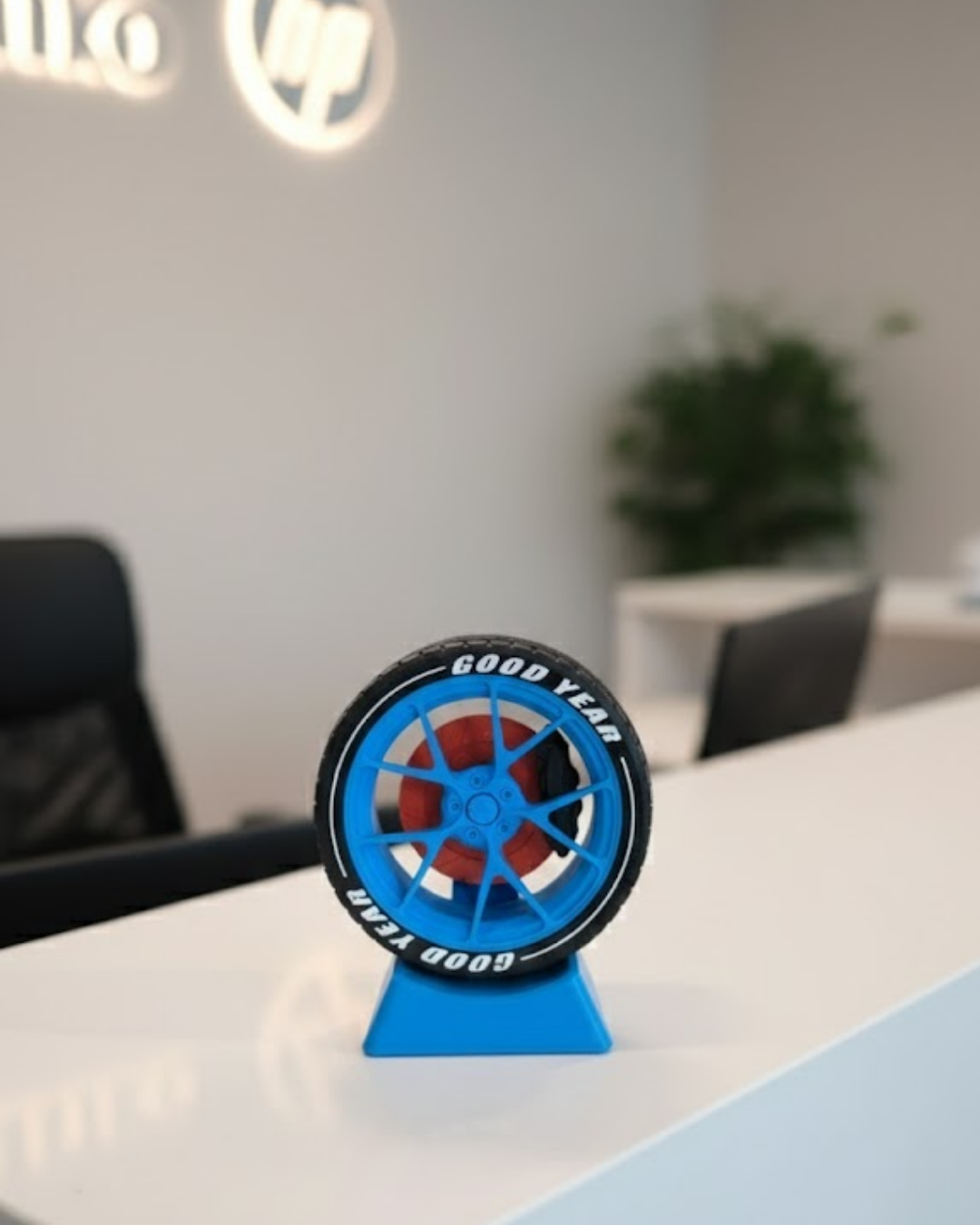 Modern ofis dekoru anlayışına uygun olarak tasarlanan bu jant görünümlü masa üstü aksesuar, sade çalışma alanlarına hareket kazandırır. Raf, masa veya sehpa üzerinde sergilenebilir. Ofis ortamında dekoratif obje olarak kullanıldığı gibi vitrin veya showroom alanlarında da şık bir tamamlayıcıdır. Minimal ve kompakt yapısı sayesinde her alana uyum sağlar. Spor ve modern tarzı bir araya getiren dekoratif bir üründür.