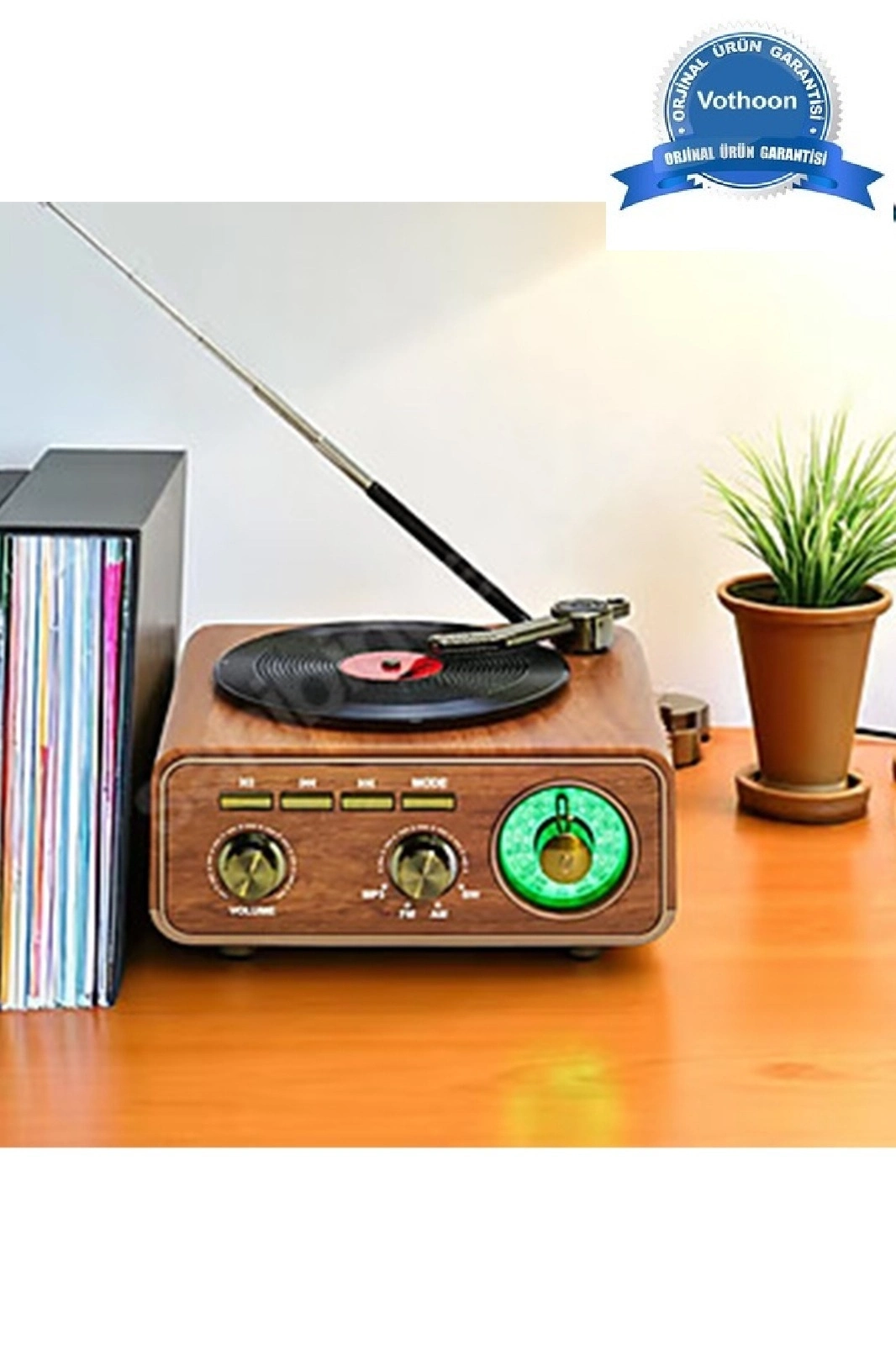 Özellikle retro dekorasyon sevenler için harika bir hediye seçeneği. Plak çalar iğnesi görünümündeki detaylar ve analog ayar düğmeleri, dijitalin soğukluğunu kırıp evinize sıcak bir hava katıyor.