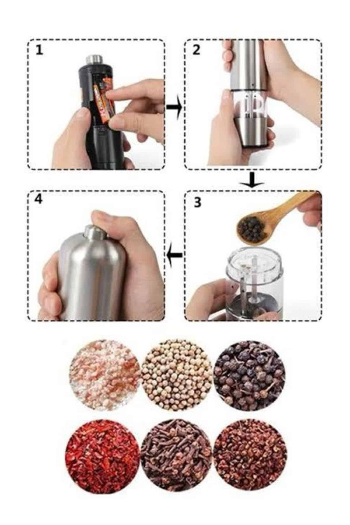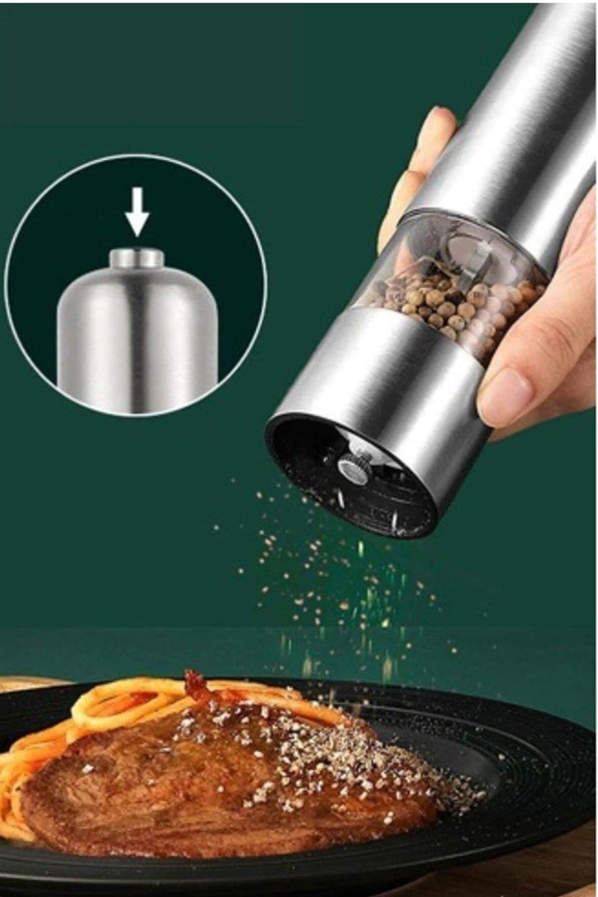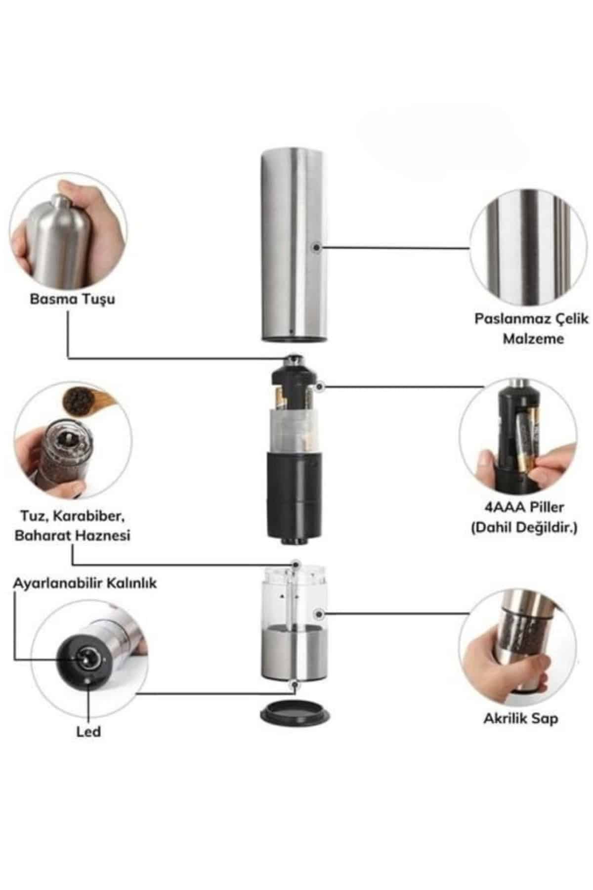 KESGİN MARKET® Taşınabilir ve Kullanımı Kolay TasarımSadece 4 adet AA pil ile çalışan bu otomatik öğütücü seti, kablosuz ve taşınabilir yapısı ile her yerde rahatça kullanılabilir. Elektrik bağlantısına ihtiyaç duymadan dilediğiniz yerde taze baharatların keyfini çıkarabilirsiniz. Yüksekliği 22.5 cm, çapı 5 cm, hazne yüksekliği 3.5 cm ve ağırlığı 304 gram olan ergonomik tasarımı sayesinde hem mutfakta hem de sofrada rahatça kullanabilirsiniz. Şık metal gri rengi, her mutfak dekorasyonuna uyum sağlayarak tarzınızı tamamlar.