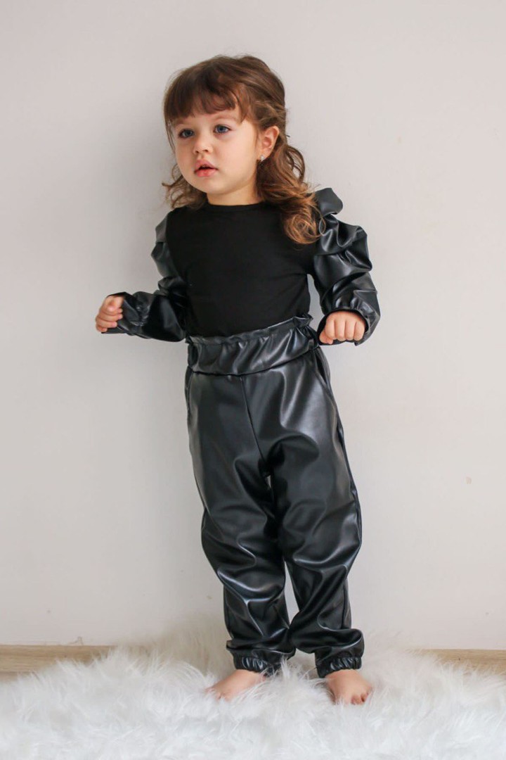· Pantolonu kemerli deri kız çocuk günlük takım, modern ve şık bir stil sunar;