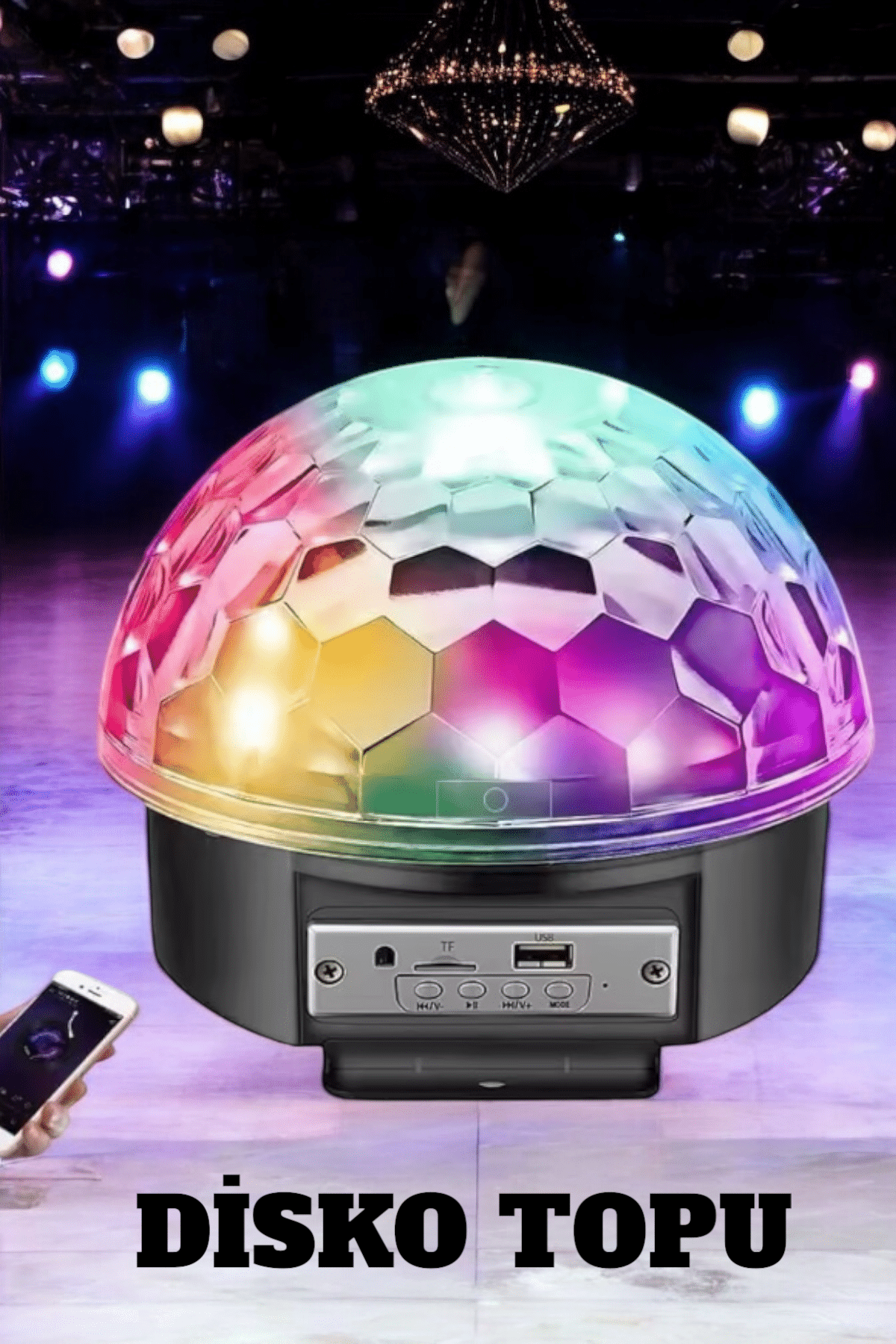 KESGİN MARKET® Partileriniz artık sıradan olmayacak! Masaüstü disko topu, ortamın havasını bir anda değiştiren ışık gösterileriyle eğlenceyi yeniden tanımlıyor. Tavana yansıyan çok renkli ışıklar, özel günlerinize eşsiz bir ambiyans katacak.• Dinamik Işık Efektleri: Renk, desen ve efekt seçenekleriyle mekanınızı hareketlendirin.• Akıllı Kontrol: Bluetooth özelliği sayesinde ışıklarınızı telefonunuzdan yönetin ve kişiselleştirin.• Her Yere Taşınabilir: Kompakt tasarımı sayesinde ürünü dilediğiniz yere götürün ve eğlenceyi başlatın.• Kapsamlı Kullanım Alanı: Ev partileri, barlar, restoranlar, düğünler ve etkinlikler için ideal.Küçük bir dokunuşla büyük bir fark yaratın. Bu taşınabilir disko topuyla her anı unutulmaz kılın!