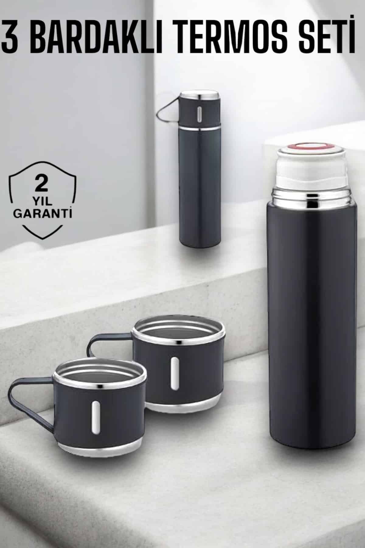 KESGİN MARKET® Gün boyunca sıcak ya da soğuk içeceğiniz hep elinizin altında! Paslanmaz çelikten üretilen bu 3’lü termos seti, 8 saate kadar ısıyı muhafaza eden vakumlu tasarımıyla uzun süreli kullanım sunar. 500 ml kapasitesi sayesinde ister çay, ister kahve, isterseniz soğuk içeceklerinizi keyifle taşıyabilirsiniz. Basınçlı kapağı sızdırmazlık sağlarken, elde yıkanabilir yapısıyla pratik bir temizlik imkanı sunar. Evde, ofiste ya da doğada her anınız için mükemmel bir tercih!