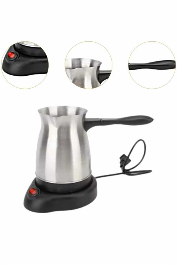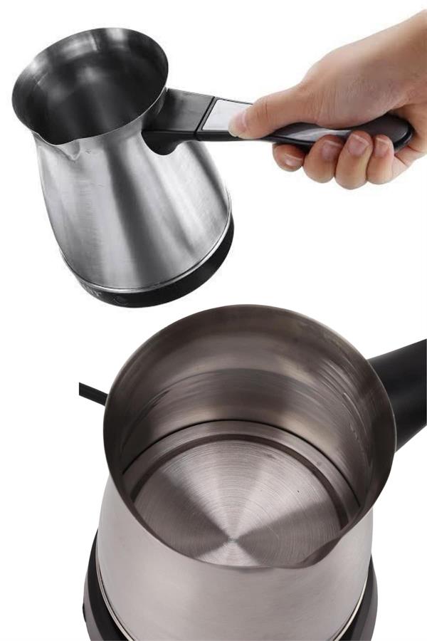KESGİN MARKET® Yüksek performansı ve şık tasarımıyla dikkat çeken bu elektrikli cezve, 800 watt gücü ile mükemmel Türk kahvesi pişirir. 360 ml kapasitesi ile 6 fincana kadar kahve hazırlama imkanı sunar, böylece kalabalık misafirlerinize kolayca lezzetli kahveler ikram edebilirsiniz. Gizli rezistans teknolojisi sayesinde daha hızlı ısınma sağlarken, güvenli kullanım sunar ve temizlik açısından büyük kolaylık sağlar.360 derece dönebilir kablosuz tabanı, kullanım sırasında rahatlık ve esneklik sağlar. Paslanmaz çelikten üretilmiş olan cezve, dayanıklı ve uzun ömürlüdür, aynı zamanda şık bir görünüm sunar. Kolayca temizlenebilen tasarımı, hijyenik bir kullanım sağlar ve her seferinde taze kahve hazırlamanızı mümkün kılar.Kırmızı güç düğmesi ile açma ve kapama işlemleri kolayca yapılabilir. ısınmayan ve ergonomik tasarıma sahip kulpu ise güvenli bir kullanım sağlar. Paslanmaz çelik gövde, hem dayanıklılığı hem de modern görünümüyle mutfağınıza zarif bir dokunuş katar.Bu elektrikli cezve, mükemmel kahveler hazırlamak isteyenler için mükemmel bir seçenek olup, hem işlevsel hem de estetik açıdan mutfağınıza modern bir dokunuş ekler. 6 fincana kadar kahve hazırlayabilmesi ile kalabalık misafirler için de ideal bir tercihtir.