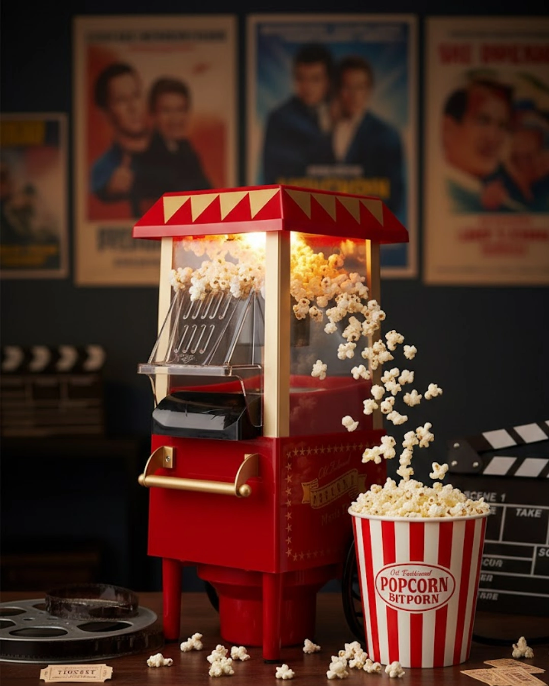 Nostaljik görünüme sahip bu yağsız popcorn makinesi, ailece keyifli anlar yaşamanız için tasarlanmıştır. Sıcak hava ile çalışan sistemi sayesinde yağ eklemeden mısır patlatır ve sağlıklı atıştırmalıklar sunar. Yapışmaz patlatma yüzeyi, mısırların eşit şekilde patlamasını sağlar.Tek seferde fazla miktarda popcorn hazırlayabilme özelliği sayesinde kalabalık ortamlarda rahat kullanım sunar. 5 dakika içinde hazır hale gelen popcorn, zamandan tasarruf sağlar. Film geceleri, çocuk etkinlikleri ve ev eğlenceleri için idealdir.Hem eğlenceli hem fonksiyonel yapısı ile öne çıkan bu popcorn makinesi, sağlıklı yaşamı tercih eden kullanıcılar için pratik bir çözümdür.