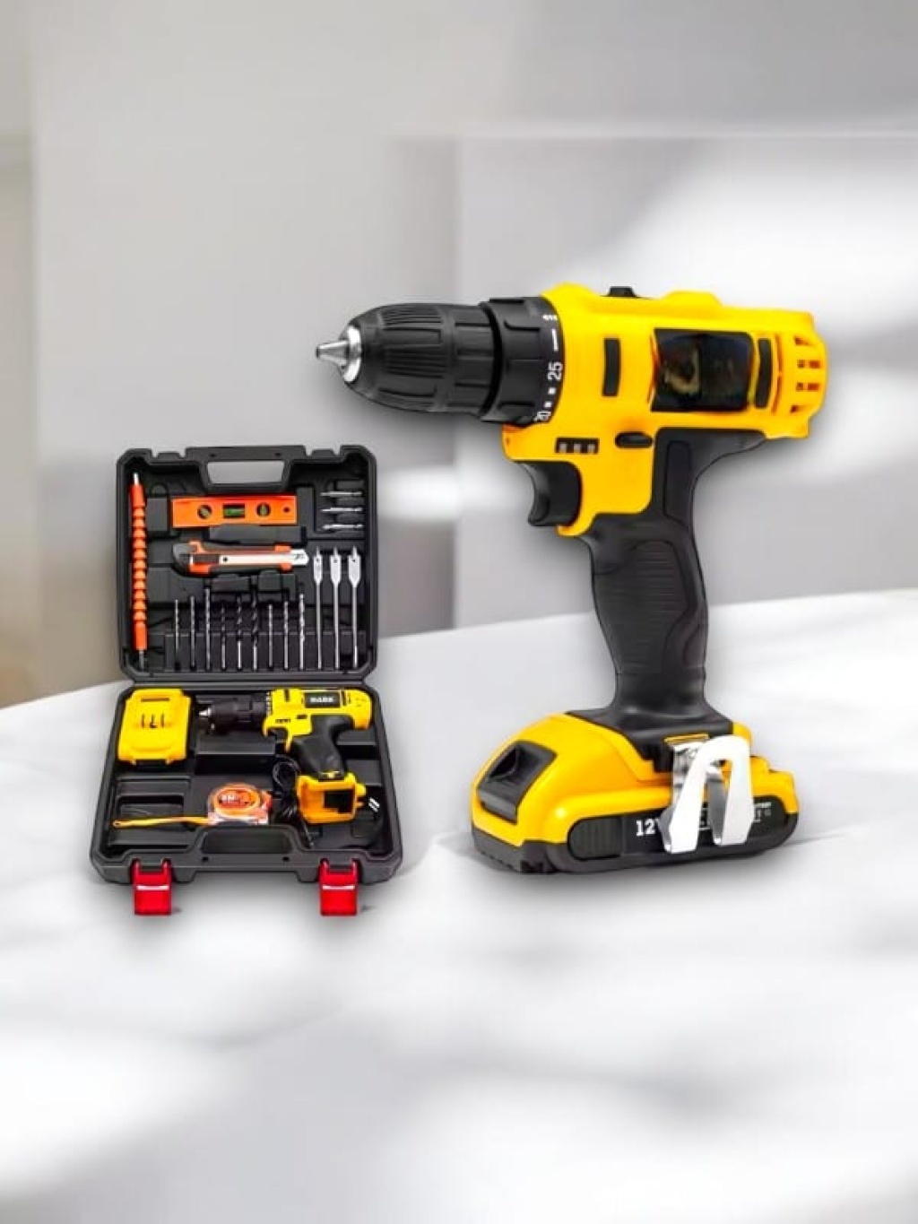 Profesyonel Matkap Seti 24w çift bataryalı metal şanzıman darbeli 27 parçalı süper setli Otomatik mil kilidi işlevi Dahili yüksek hassasiyetli rulman ile metal vites kutusu Ileri Geri, değişken hız ve elektrikli fren Led çalışma ışığı ve akıllı batarya göstergesi Hızlı şarj adaptörü ile 30 dakikada içinde tam dolum Daha az yorgunluk ve daha fazla konfor için ergonomik tasarım 24 parça aksesuar 1 adet akrobat spiral 1 adet uzatma aparatı 1 adet lokma bağlantı aparatı 5,6,7,8,9,10,11,12,13 mm lokma ucu 6 adet bits vidalama ucu 3 adet hss metal 3 adet ahşap delme ucu