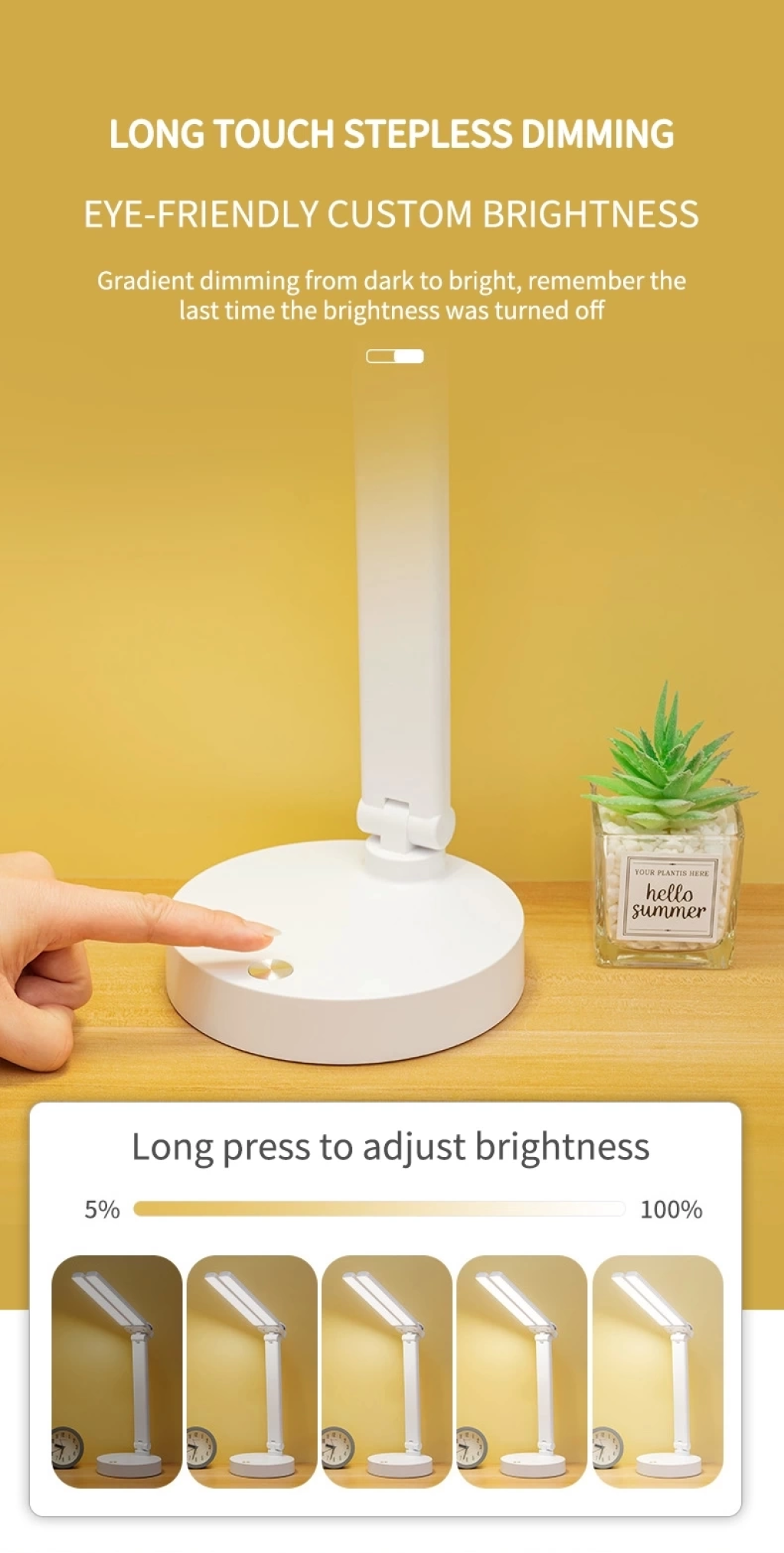 - Şarjlı Dokunmatik Parlaklığı Ayarlanabilen 3 Renk Tonlu Masa Lambası Masa lambasında 3 renk tonu bulunmaktadır. (Sıcak Işık - Beyaz Işık - Gün Işığı) Dokunmatik alana basılı tutarak parlaklığı azaltabilir ya da artırabilirsiniz Şarja takılıyken kullanılabilmektedir  RENK SICAKLIĞI: 3000 - 6000K DOKUNMATİK MODU: 3 FARKLI RENK MODU (Sıcak Işık - Beyaz Işık - Gün Işığı) BATARYA: Li-ion 2 18650 - 3.7V GÜÇ: 5W GİRİŞ: DC5V / 1A LED ADEDİ: 40 ŞARJ KABLOSU: 120CM