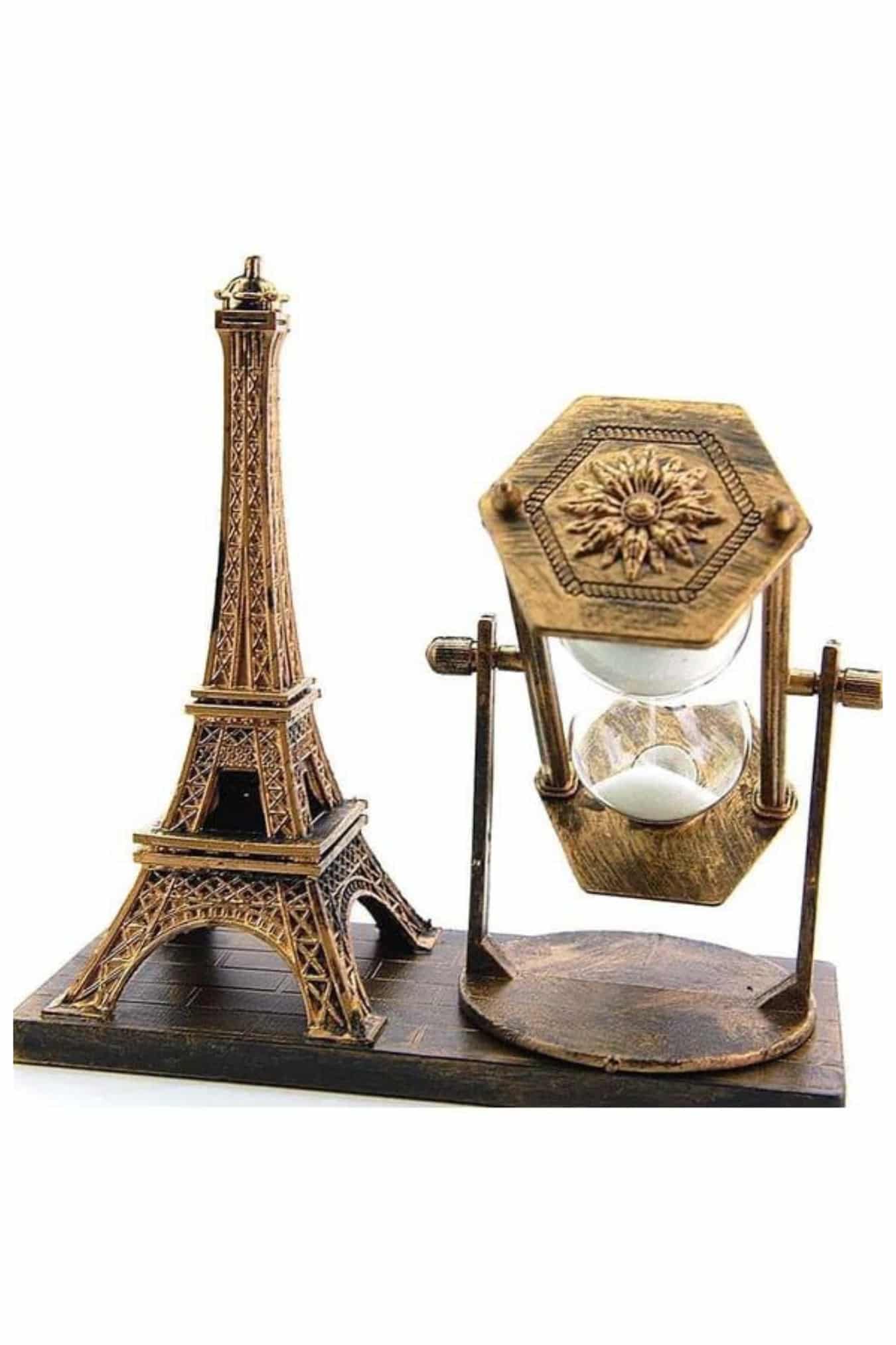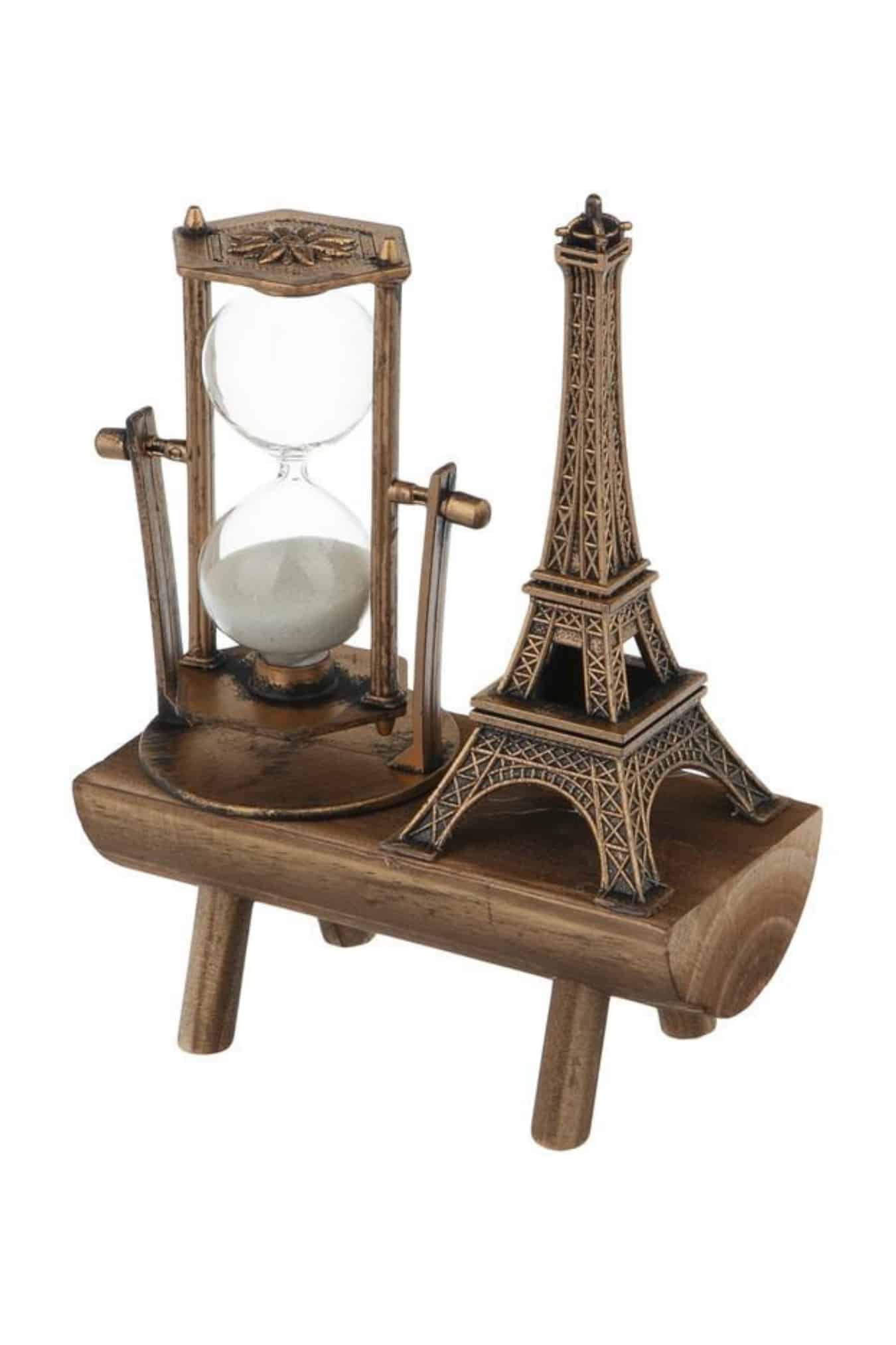 KESGİN MARKET ® Retro Eyfel Kulesi Ve Kum Saati Dekoratif Ahşap Görünümlü Masa Biblosu