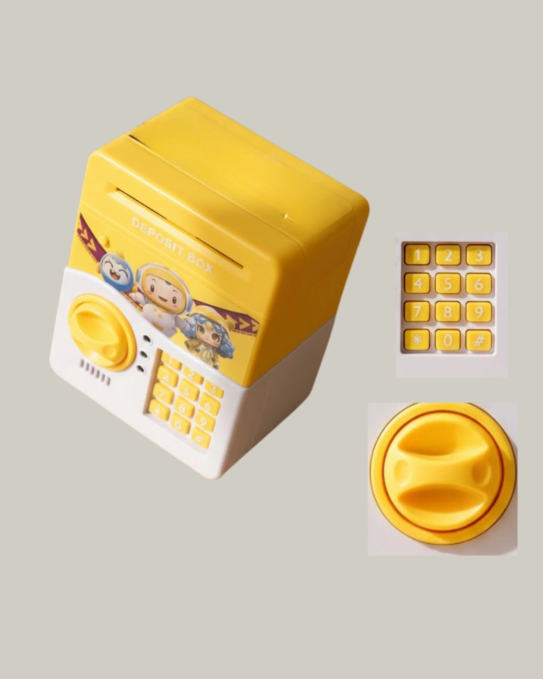 Canlı sarı rengi ve eğlenceli tasarımıyla öne çıkan bu sarı ATM görünümlü elektronik kumbara, çocukların biriktirme alışkanlığını küçük yaşta kazanmasını destekler. Elektronik şifre sistemi sayesinde çocuklar kendilerine ait özel bir şifre belirleyebilir ve larını güvenle saklayabilir. Bu sistem, çocuklara kişisel sorumluluk ve güvenlik bilinci kazandırır.Kumbara, gerçek bir ATM gibi çalışacak şekilde tasarlanmıştır. Kâğıt lar hazneye yaklaştırıldığında otomatik olarak içeri çekilirken, bozuk lar da rahatlıkla kabul edilir. Otomatik girişi, ürünü sıradan kumbaralardan ayıran en eğlenceli özelliklerden biridir. Yüksek kapasiteli iç hacmi sayesinde çocuklar uzun süre biriktirebilir.Işıklı ve sesli efektler, her tuş basımında aktif hale gelir ve kullanım deneyimini keyifli hale getirir. Sarı renkli tasarımı, çocuk odalarına enerji katar ve dekoratif bir görünüm sunar. Dayanıklı ABS plastik gövdesi, güvenli ve uzun ömürlü kullanım sağlar.Eğitici ve eğlenceli yapısıyla bu kumbara, doğum günü, bayram ve karne hediyesi olarak ideal bir tercihtir. Çocukların hem eğlenmesini hem de tasarruf bilinci kazanmasını sağlar.