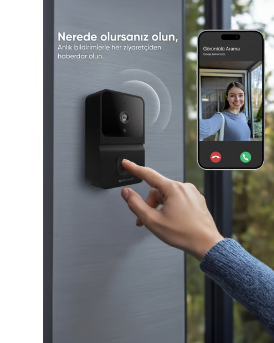 Kablosuz video kapı zili, ev girişlerini daha güvenli hale getirmek için tasarlanmış akıllı bir güvenlik cihazıdır. Yüksek çözünürlüklü kamera sistemi sayesinde kapı önündeki görüntüyü net şekilde aktarır. 85 derece geniş açılı lens, daha fazla alanı kapsayarak güvenlik seviyesini artırır.Gece görüş özelliği sayesinde düşük ışıkta bile net görüntü elde edilir. Gerçek zamanlı fotoğraf çekimi ile kapıya gelen kişilerin kaydı tutulabilir. Çift yönlü ses sistemi, kapı önündeki ziyaretçiyle karşılıklı konuşma imkanı sağlar.Mobil uygulama üzerinden anlık bildirim alınabilir ve canlı izleme yapılabilir. 800 mAh batarya uzun süreli kullanım sunar.