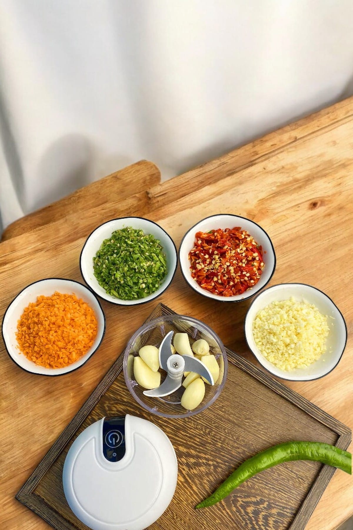KESGİN MARKET® USB şarjlı Rondo Blender, pratikliği ve taşınabilirliğiyle modern yaşamın ihtiyaçlarına uygun olarak tasarlanmış bir mutfak yardımcısıdır. Kompakt boyutları ve şık görünümüyle her mutfağa uyum sağlar. USB şarj özelliği, priz bağımlılığını ortadan kaldırır ve cihazı dilediğiniz her yerde kullanabilmenizi mümkün kılar. Ofiste, spor salonunda veya seyahat esnasında sağlıklı atıştırmalıklar hazırlamak artık çok daha kolay. Kolay temizlenebilen bıçakları ve kullanıcı dostu kontrol paneli, yemek hazırlığı sırasında hem zaman tasarrufu sağlar hem de keyifli bir deneyim sunar. 250 ml kapasitesiyle sarımsak, soğan ve baharat gibi malzemeleri hızla doğramanıza yardımcı olur.Rondo Blender, mutfağınızda devrim yaratacak şekilde tasarlanmış bir cihazdır. Kompakt yapısı sayesinde yer kaplamaz, USB şarj özelliği ile hareket özgürlüğü sunar. Sağlam bıçakları sayesinde malzemeleri hızlıca doğrayarak yemek hazırlıklarını kolaylaştırır. Kullanıcı dostu tasarımı, temizliğin zahmetsizce yapılmasını sağlar ve 250 ml kapasitesiyle günlük kullanım için idealdir. Sarımsak, soğan veya baharat gibi küçük malzemeleri kolayca doğramanıza olanak tanırken, aynı zamanda şık ve modern tasarımıyla mutfak dekorasyonunuzu tamamlar. Bu portatif mini blender, hem işlevselliği hem de estetiği bir araya getirerek yemek hazırlamayı keyifli hale getirir.