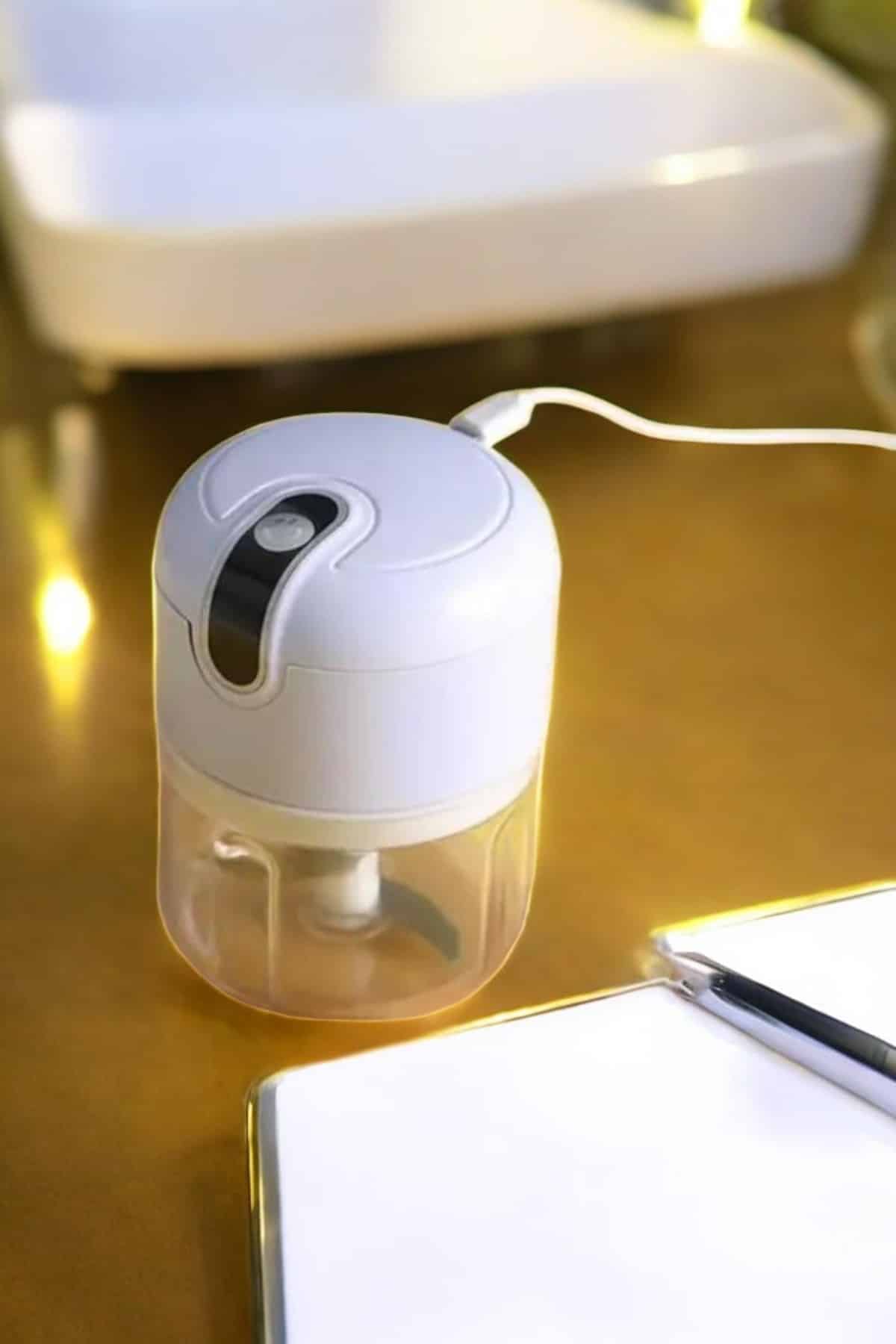 KESGİN MARKET® USB şarjlı pratik ve portatif Rondo Blender, yenilikçi tasarımıyla mutfakta zamandan tasarruf etmenizi sağlar. Modern ve kompakt yapısı, hem taşınabilirlik hem de kolay kullanım sunar. USB ile şarj edilebilmesi, priz arama sorununu ortadan kaldırarak cihazı istediğiniz her yerde kullanma imkanı tanır. 250 ml kapasiteli haznesi, günlük ihtiyaçlarınızı karşılayacak ideal bir boyutta olup sarımsak, soğan ve baharat gibi malzemeleri kolayca doğrayabilmenizi sağlar. Kolay temizlenen bıçakları ve kullanıcı dostu kontrol paneli, mutfaktaki işlerinizi zahmetsiz hale getirir. Şık ve işlevsel tasarımıyla bu blender, mutfağınızda sağlıklı ve hızlı yemekler hazırlamanın en pratik yolu olacak.