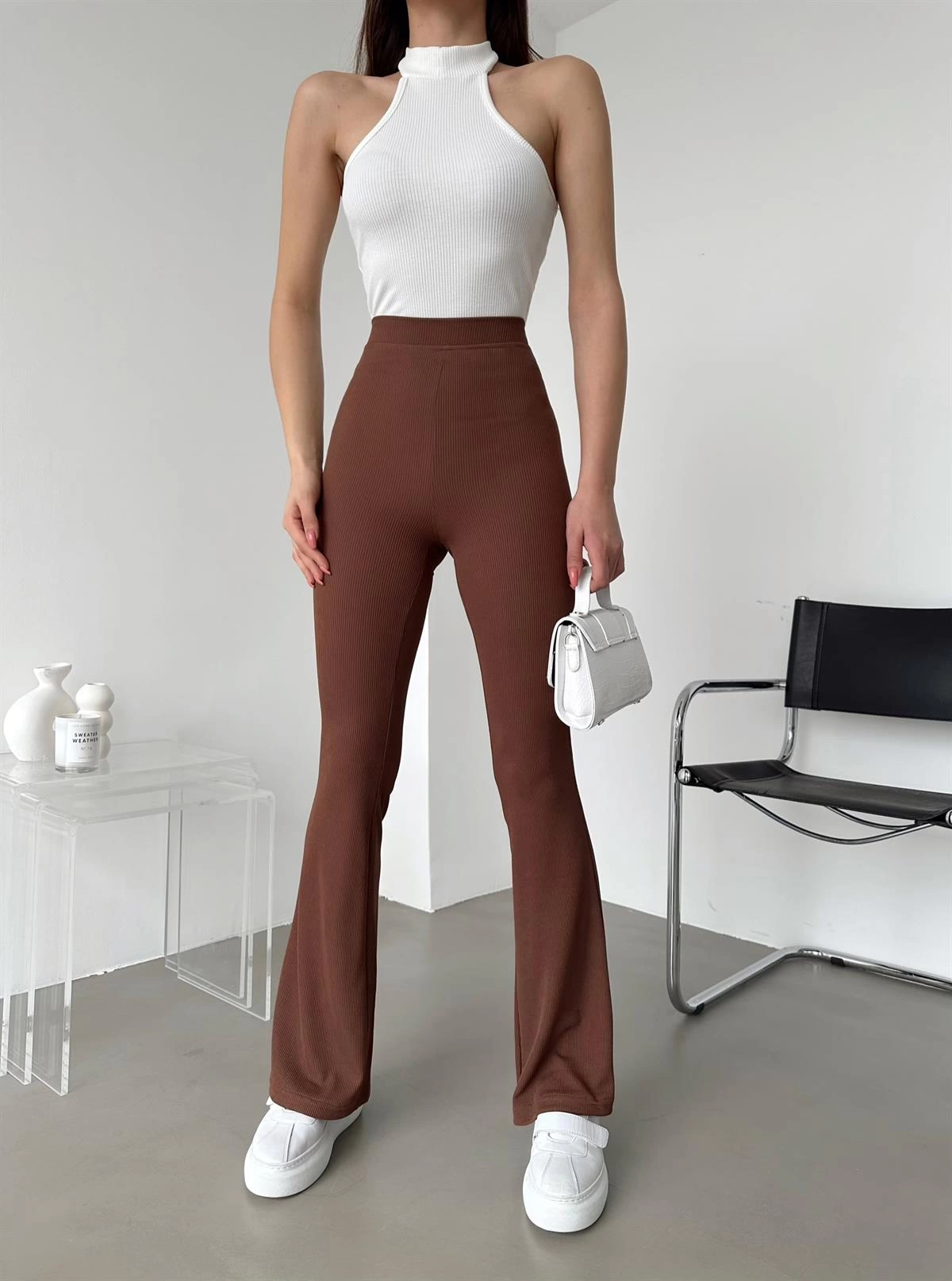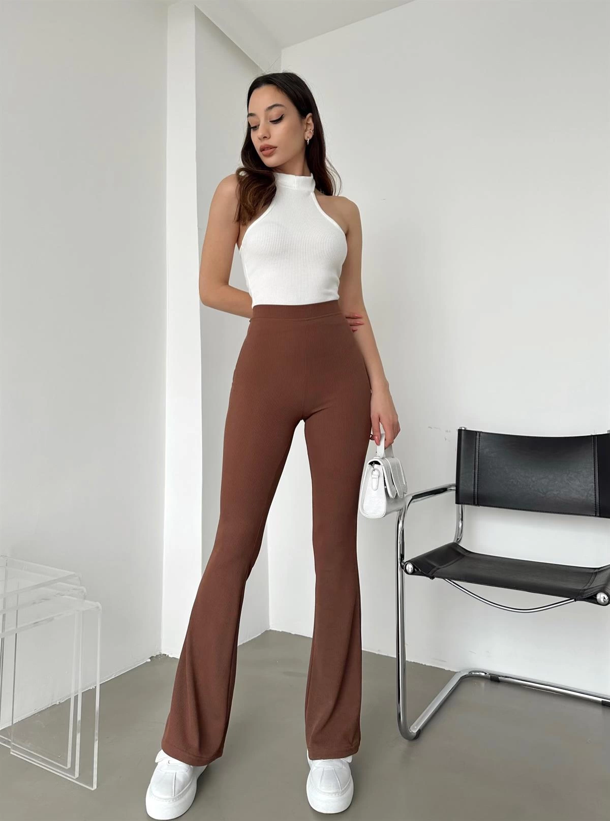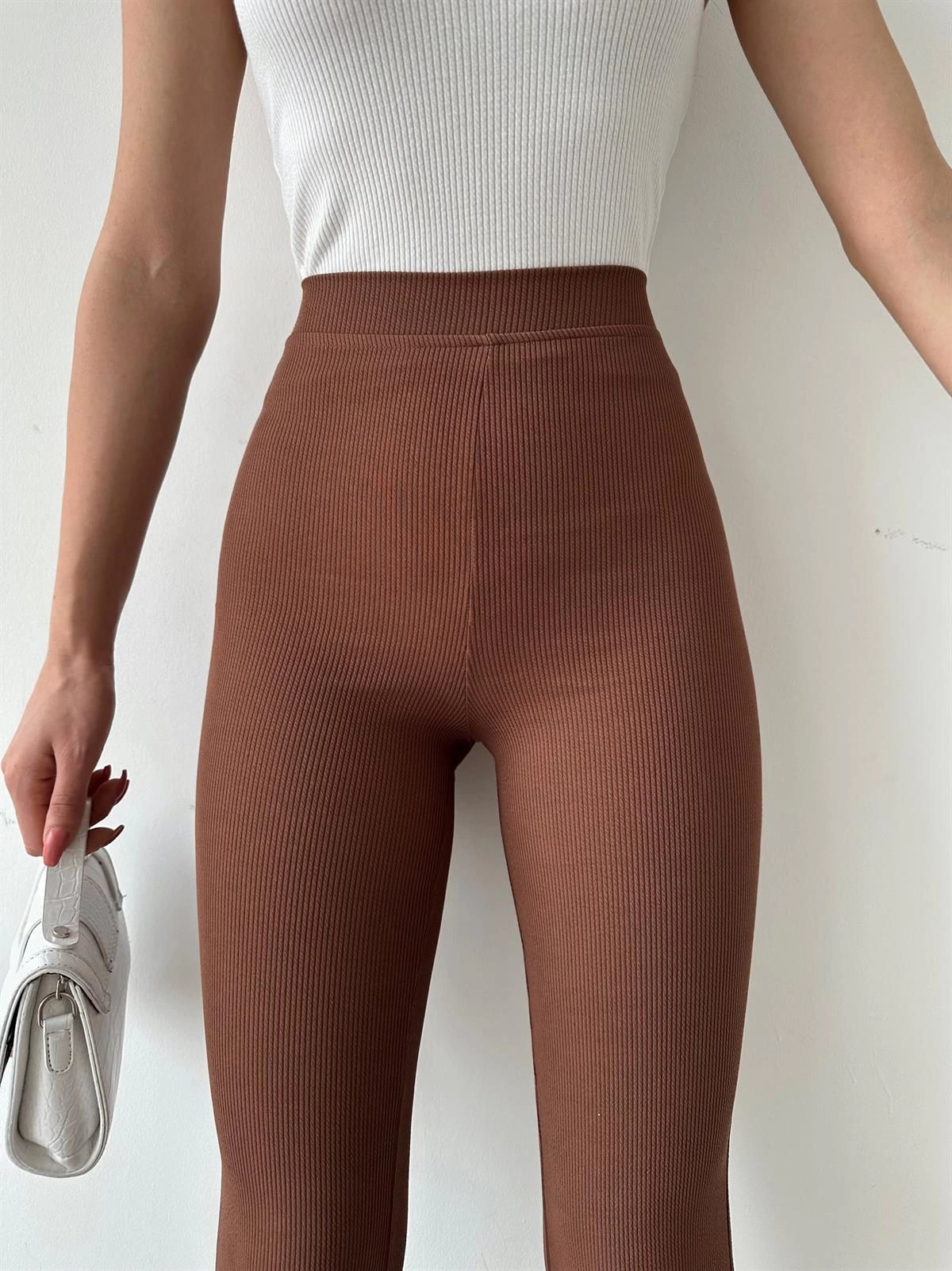 Şık Ve Rahat Yüksek Bel İspanyol Paça Fitilli Toparlayıcı Kahverengi Tayt -Kendinizi hem şık hem de rahat hissetmenin anahtarı, gardırobunuzun vazgeçilmez parçası olmaya aday Yüksek Bel İspanyol Paça Fitilli Toparlayıcı Kahverengi Tayt ile geliyor. Bu tayt, modern tasarımıyla göz doldururken, konforuyla da sizi memnun edecek.