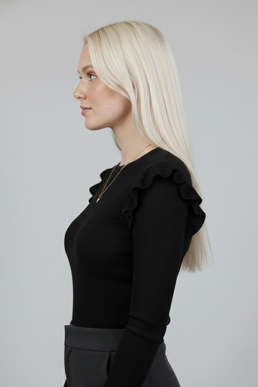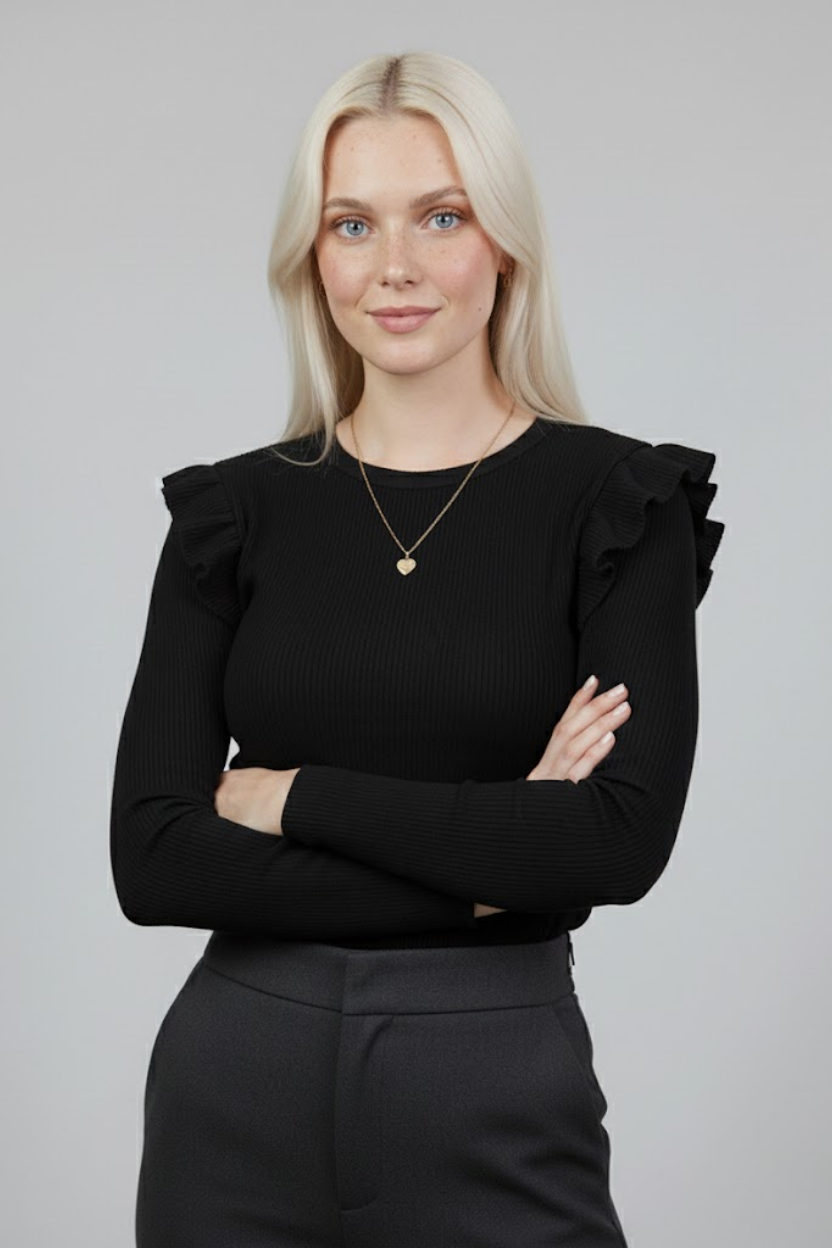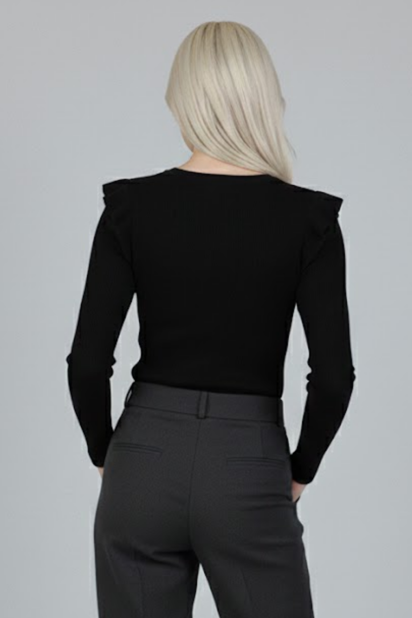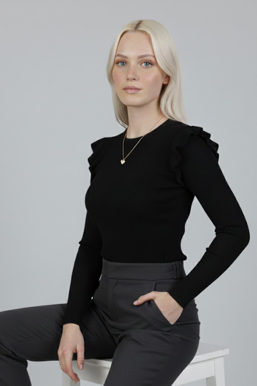 Benzersiz Omuz Detayı: Her tarza sofistike bir hava katan, kat kat fırfır detaylı omuz tasarımı sayesinde, sade bir kombini bile anında göz alıcı hale getirebilirsiniz. Bu detay, ceketsiz kullanımlarda bile stilinizi ön plana çıkarır.