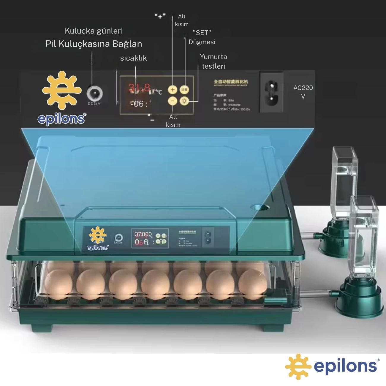 kuluçka makinesi, tam otomatik, 130 yumurta kapasiteli, portatif kuluçka cihazı, gün sayaçlı, otomatik yumurta çevirme, videolu kurulum, yedek motorlu kuluçka, civciv çıkarma makinesi, kaz ördek uyumlu kuluçka, yumurta çeviren makine