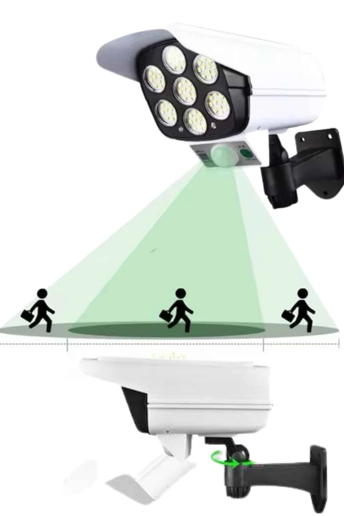 Bu güneş enerjili güvenlik ışığı, çevre dostu tasarımı ve pratik kullanımı ile hem güvenlik hem de dekoratif amaçlarla ideal bir çözümdür. Hem kamera görünümü hırsızları caydırma etkisi yaratır hem de bahçeniz için güçlü bir aydınlatma sunar. Dahili PIR hareket sensörü, 10 ila 20 feet mesafede hareketi algılayarak gece boyunca ışığın otomatik olarak yanmasını sağlar. Bu özellik, evinizin etrafındaki alanları güvenli hale getirir. Güneş paneli, güneş ışığını emerek şarj olur ve ışığın enerji ihtiyacını karşılar, böylece elektrik tüketimi ve çevreye olan etkisi minimuma iner. Pil kapasitesiyle de, düşük ışık modunda bile yaklaşık 40 saate kadar çalışma süresi sunar. Kurulumu oldukça basittir ve güneş paneli ve ışık kaynağının yönü 5 eksenli rotasyon sayesinde rahatça ayarlanabilir, böylece istediğiniz alanı verimli bir şekilde aydınlatabilirsiniz. IP66 su geçirmezlik standardına sahip olması, ürünün yağmur, kar gibi dış hava koşullarında bile dayanıklı olmasını sağlar. Bu ışık, güvenlik ihtiyacınızı karşılamakla kalmaz, aynı zamanda dış mekanlarınızı şık bir şekilde aydınlatarak, bahçeniz, verandanız, garajınız ya da yol kenarlarınıza es bir görünüm kazandırır.