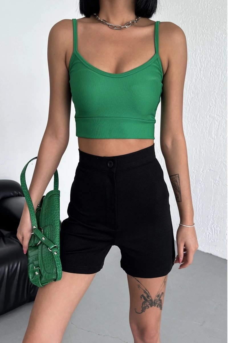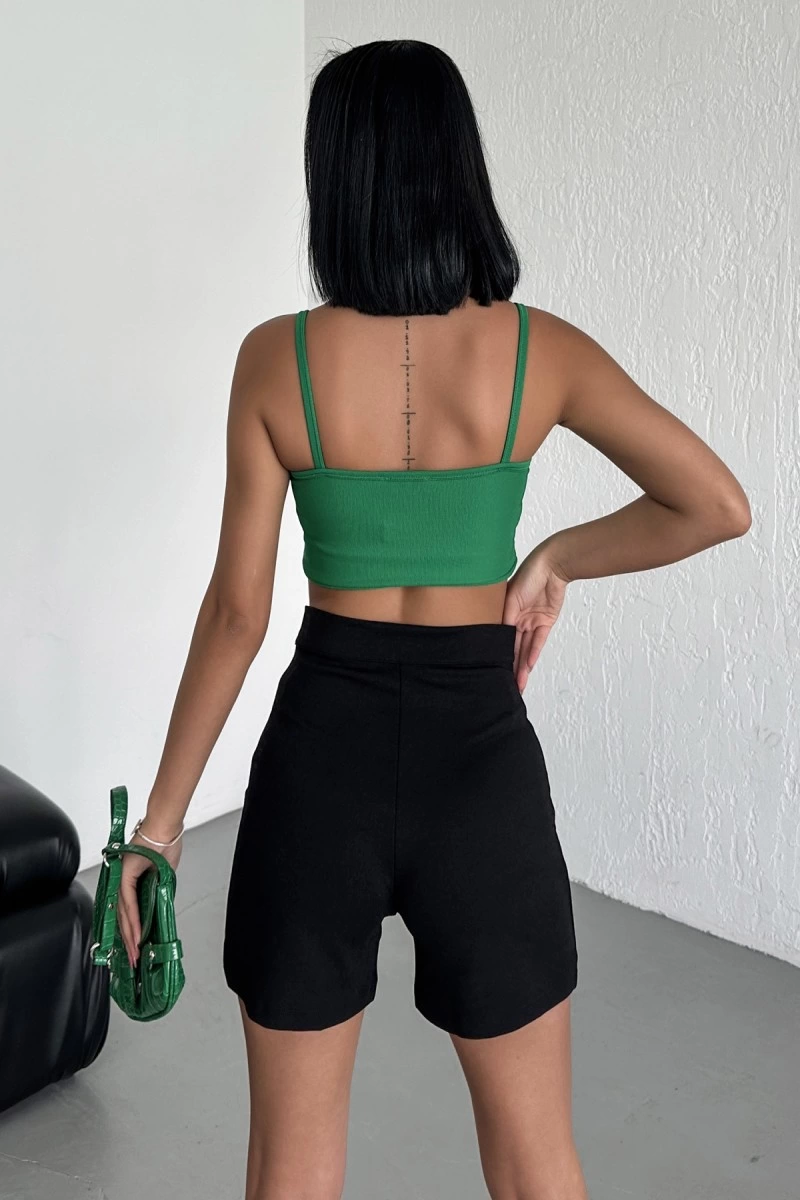 Tarz ve Rahatlığı Bir Arada Sunan Yüksek Bel Esnek Likralı Krep Şort Siyah