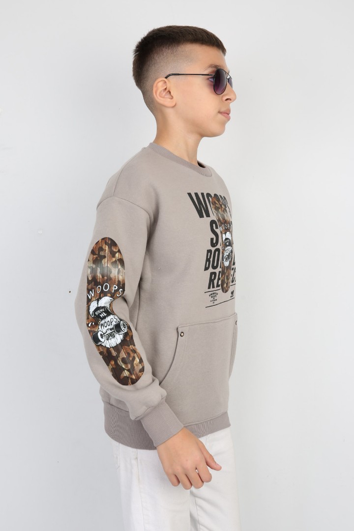 Üç İplik Şardonlu Baskılı Kanguru Cepli Erkek Çocuk Günlük Sweatshirt