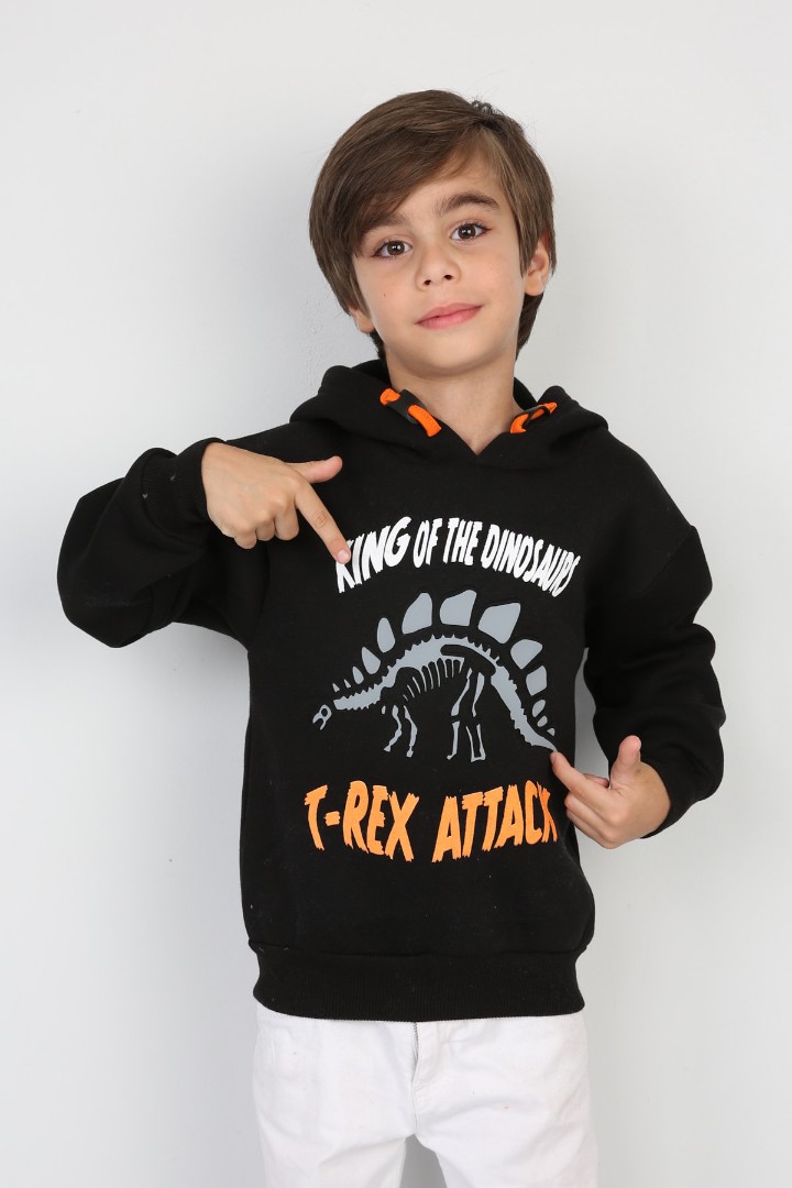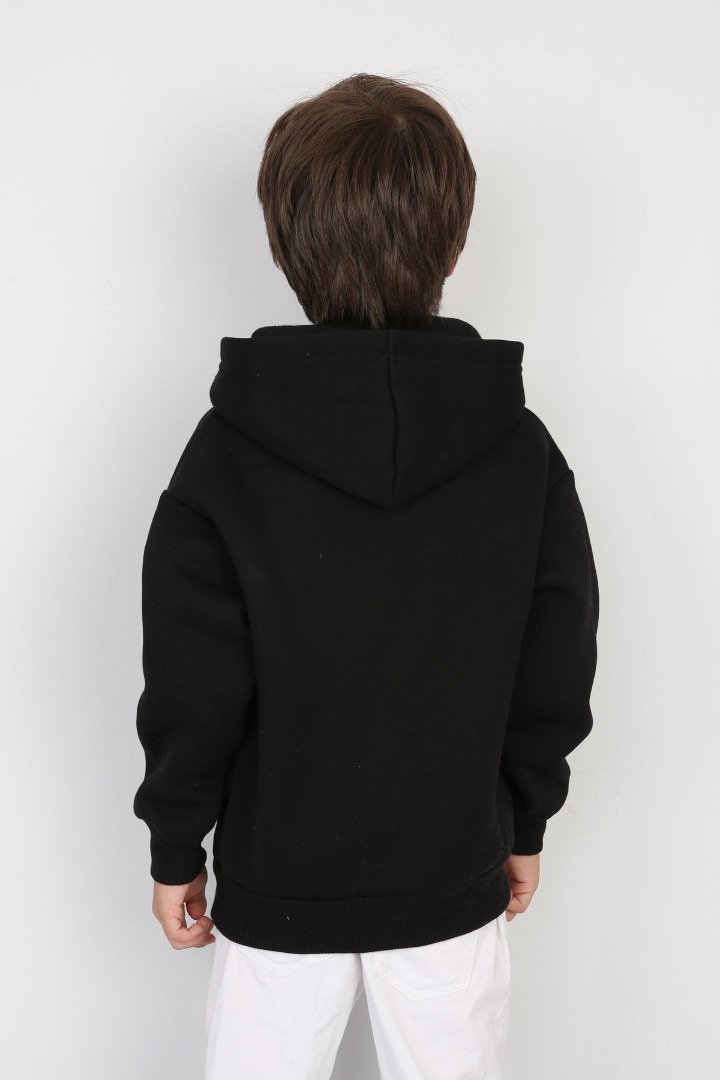 Üç İplik Şardonlu Baskılı Kapşonlu Erkek Çocuk Günlük Sweatshirt