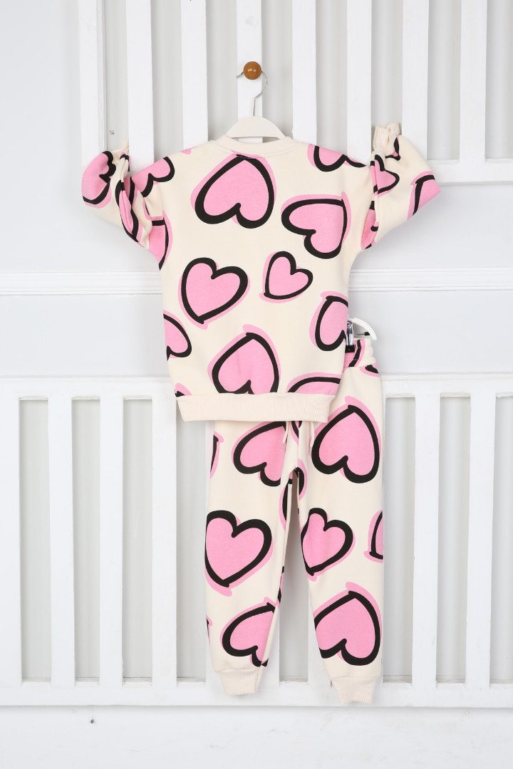 Üç İplik Şardonlu Kalp Baskılı Kız Çocuk Günlük Takım