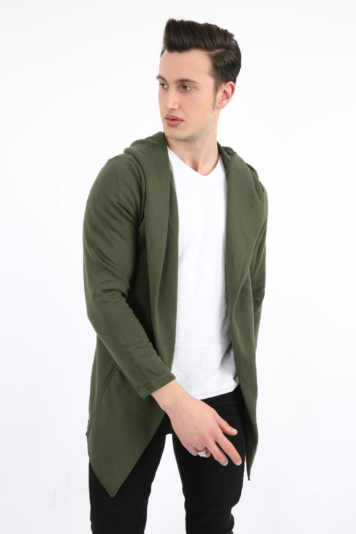 Üç İplik Şardonlu Kapşonlu Cepli Erkek Günlük Panço Hırka