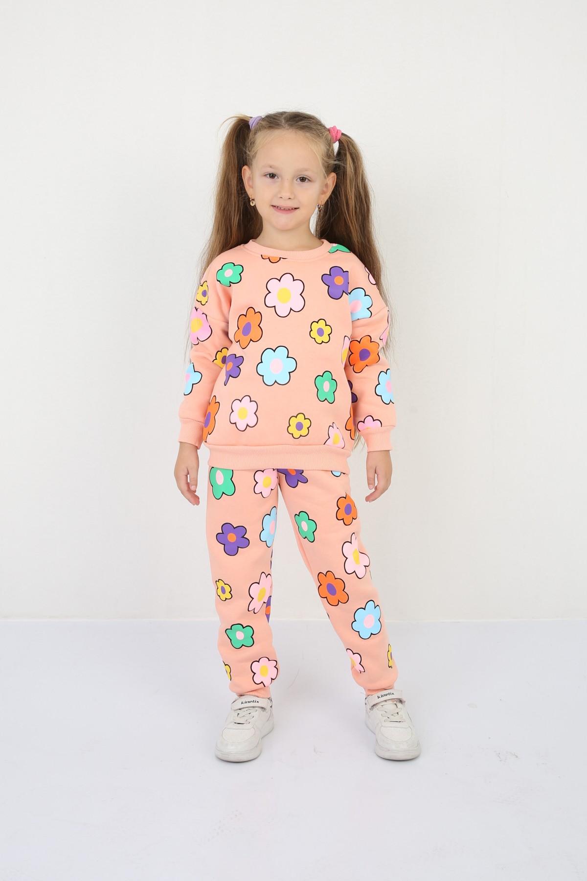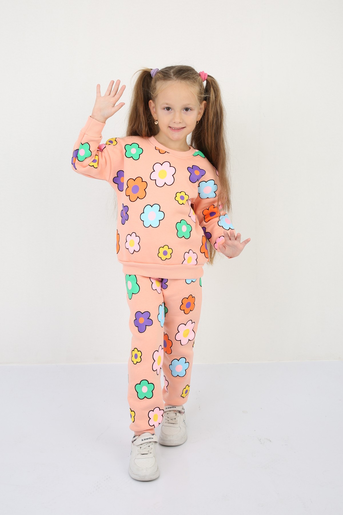 · Üç iplik şardonlu kız çocuk günlük takım, sıcak ve konforlu kullanım sunar;