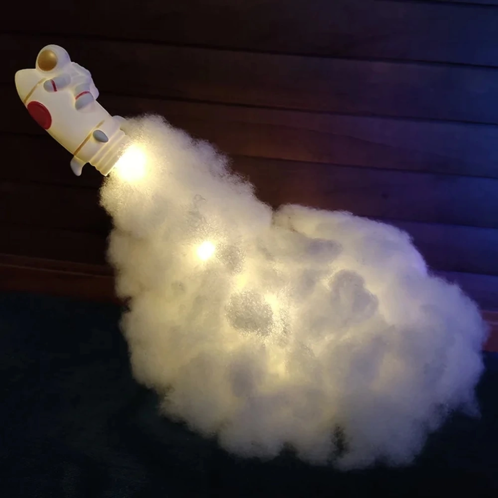 Sevdiğiniz kişilere verebileceğin dekoratif roket üzerinde uçan astronot gece lambası.