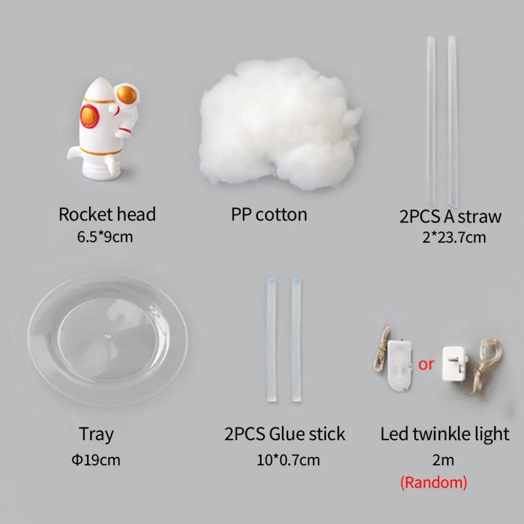 * Roket üzerinde uçan astronot dekoratif olarak kullanılabilir.