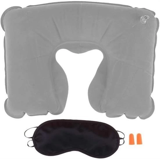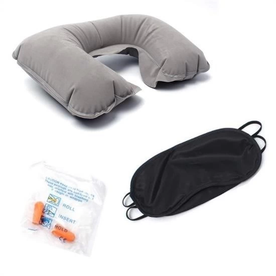 Üçlü Seyahat Seti Şişme Yastık Göz Bandı Kulak Tıkacı