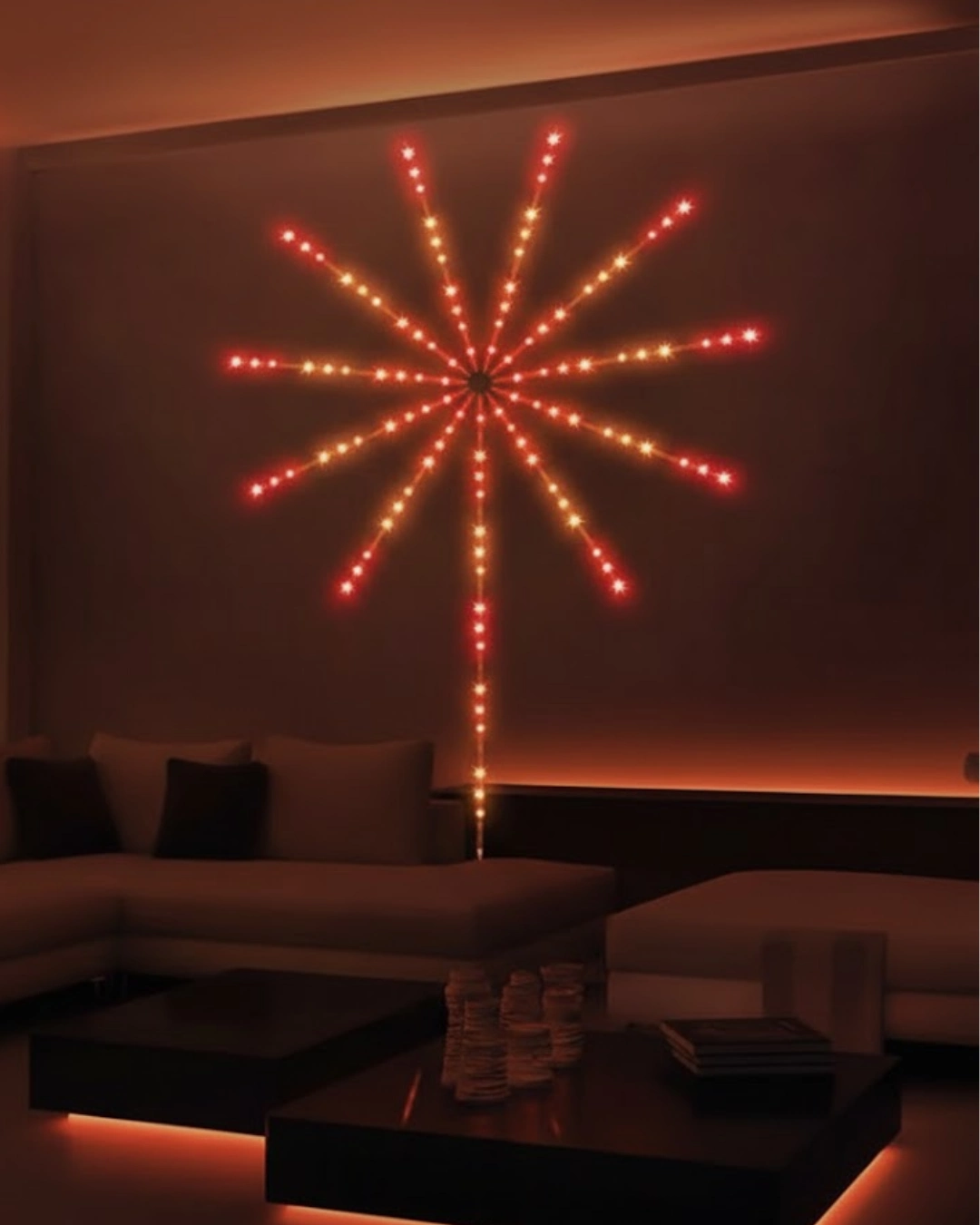 Akıllı RGB LED Havai Fişek Duvar Lambası, yaşam alanlarını sıradan aydınlatmanın ötesine taşıyan modern ve dekoratif bir aydınlatma çözümüdür. Duvara monte edilebilen starburst (havai fişek) tasarımı sayesinde bulunduğu ortama dinamik, eğlenceli ve dikkat çekici bir atmosfer kazandırır. Özellikle salon, genç odası, oyun odası, yatak odası veya parti alanları için ideal bir dekoratif üründür.Kumandalı RGB LED Starburst Duvar Lambası, iç mekânlarda dikkat çekici bir atmosfer oluşturmak için tasarlanmış dekoratif bir aydınlatma ürünüdür. Duvara monte edilen yıldız patlaması formu, klasik aydınlatma ürünlerinden farklı olarak sanatsal bir görünüm sunar. Salon, genç odası, oyun odası veya özel etkinlik alanları için ideal bir dekoratif çözümdür.Ürün, sökülebilir LED kollardan oluşan modüler bir yapıya sahiptir. Bu sayede kullanıcı, ışık kollarını kendi zevkine göre düzenleyebilir. Simetrik bir yıldız görünümü ya da daha özgür bir tasarım oluşturmak mümkündür. Kurulumu pratik olup, duvar yüzeyine zarar vermeden sabitlenebilir.RGB LED teknolojisi sayesinde çok sayıda renk ve efekt seçeneği sunar. Tek renkli aydınlatmalar, geçişli renk modları ve hareketli efektler ile farklı ambiyanslar yaratılabilir. Uzaktan kumanda ile açma-kapama, renk değiştirme, parlaklık ayarı ve mod seçimi kolayca yapılabilir.Bazı modlarda müzikle senkronize çalışabilme özelliği sayesinde ışıklar ses ritmine göre hareket eder. Bu özellik, özellikle eğlence ve parti ortamlarında ürünü daha da cazip hale getirir. Ortamın enerjisine göre dinamik ya da sakin bir ışık atmosferi oluşturmak mümkündür.USB güç girişi ile çalışan ürün, düşük enerji tüketimi sayesinde uzun süreli kullanımlarda avantaj sağlar. Bilgisayar, adaptör veya taşınabilir güç kaynaklarıyla rahatlıkla kullanılabilir. Düşük ısı üretimi sayesinde güvenli bir kullanım sunar.Kumandalı RGB LED Starburst Duvar Lambası, dekorasyonuna modern, eğlenceli ve teknolojik bir dokunuş katmak isteyen kullanıcılar için es ve işlevsel bir aydınlatma çözümüdür.