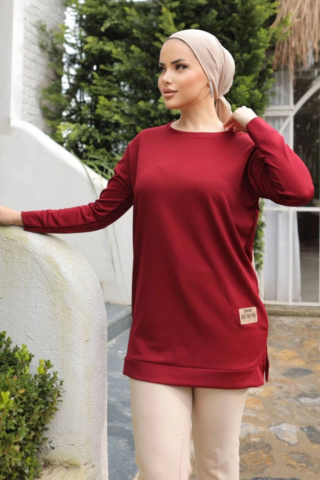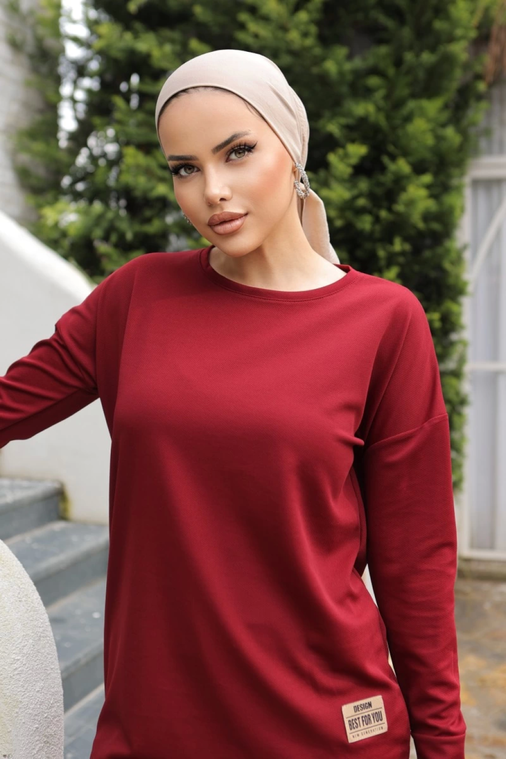 Yeni Stil Bordo Arma Detay Tunik 10020