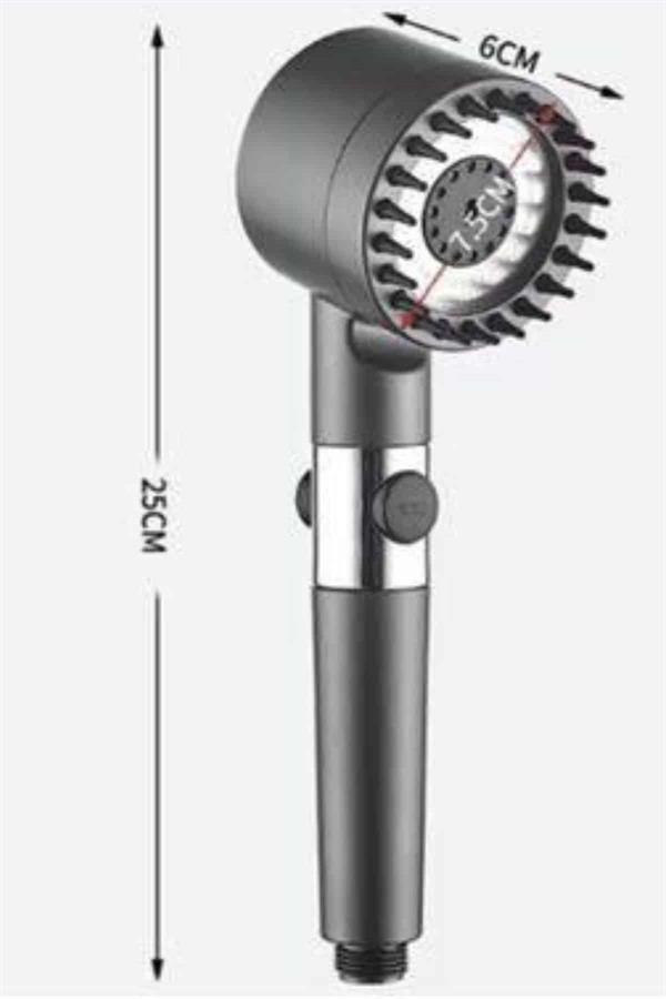 KESGİN MARKET® Krom kaplama malzemesiyle üretilmiş olan bu duş başlığı, hem estetik görünümüyle banyonuza şıklık katarken hem de uzun ömürlü ve dayanıklı bir kullanım sunar. Paslanmaya karşı dirençli yapısı sayesinde ilk günkü parlaklığını uzun süre korur ve günlük kullanımda yüksek performans sağlar. Üç farklı masaj modu sayesinde duş keyfinizi bambaşka bir seviyeye taşıyan bu ürün; rahatlatıcı, canlandırıcı ve derin doku masajı seçenekleriyle kişisel konforunuzu ön plana çıkarır. Günün stresini üzerinizden atmak veya güne zinde başlamak için ihtiyacınıza göre kolayca modlar arasında geçiş yapabilirsiniz.Kullanıcı dostu tasarımı sayesinde kurulumu oldukça basittir; ekstra bir ekipmana gerek kalmadan dakikalar içinde monte edilebilir. Ergonomik tutuşu ve su tasarrufu sağlayan yapısıyla hem çevre dostu hem de ekonomik bir kullanım sunar. Pratik kullanımı sayesinde her banyoya kolaylıkla entegre edilebilen bu duş başlığı, fonksiyonel ve şık bir banyo aksesuarı arayanlar için ideal bir seçimdir.