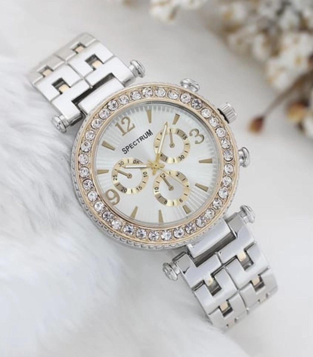 Zarif ve Şık Özel Tasarım Zirkon Taşlı Metal Bayan Kol Saati (Gümüş-Gold) Bu özel tasarım Gümüş-Gold renk zirkon taşlı metal bayan kol saati, hem şıklığı hem de zarafeti bir araya getiren göz alıcı bir aksesuardır. İşte bu saatin bazı önemli özellikleri: