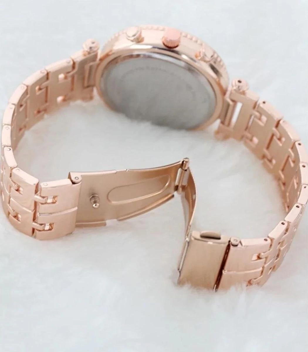 Renk Seçenekleri: Bu özel tasarım saat, rose renginin yanı sıra farklı renk seçenekleri sunabilir, böylece kişisel tarzınıza uygun olanı seçme özgürlüğüne sahipsiniz.